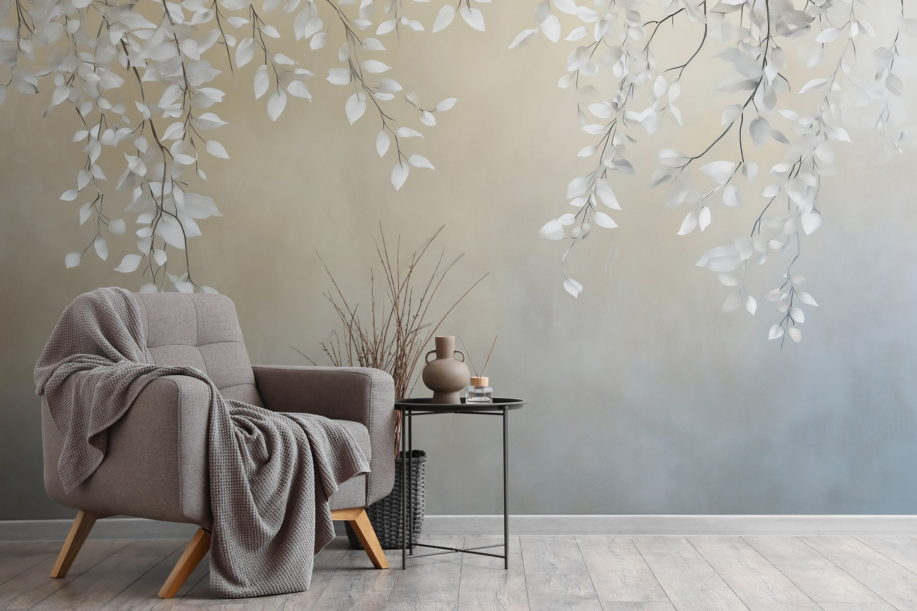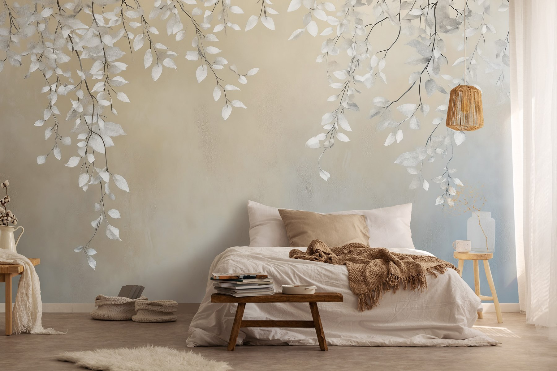 Transforme cualquier espacio con el relajante encanto de “Hojas blancas en una rama”. Este mural se sumerge en el arte de la naturaleza, capturando delicadas hojas que parecen mecerse suavemente con una suave brisa. Es como llevar un tranquilo bosque directamente a su salón, sin las molestas agujas de pino. Imagínate tomando el café de la mañana mientras contemplas este sereno telón de fondo: ¡te levantará el ánimo al instante! Perfecto para un rincón acogedor o incluso un dormitorio de ensueño, teje un poco de magia en los momentos cotidianos. Es como tener un pedazo de tranquilidad al alcance de la mano. ¿Quién no querría eso?