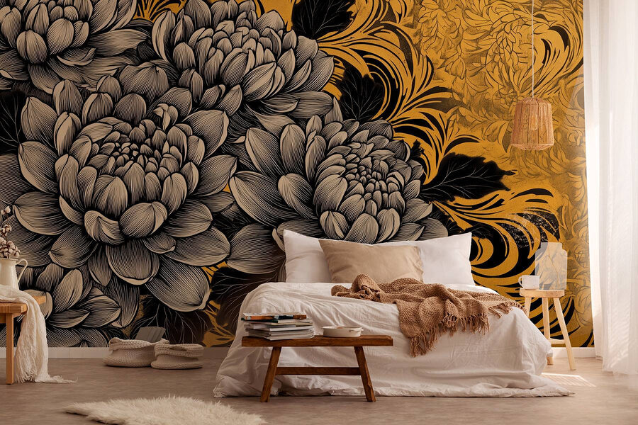 Transforme cualquier pared aburrida en una obra maestra floreciente con este exquisito mural floral en negro y crema. Imagínese esas preciosas flores retorciéndose y girando a través de su espacio, casi como si estuvieran bailando. Los intrincados detalles aportan un ambiente elegante que puede hacer que cualquier habitación se sienta un poco más viva. Imagina que te despiertas, te tomas un café y te recibe esta impresionante vista. Es como entrar en un paraíso botánico, ¡pero sin los estornudos provocados por el polen! Perfecto para una sala de estar o incluso un rincón acogedor, este mural promete ser un tema de conversación. ¿Por qué limitarse a decorar cuando se puede crear?