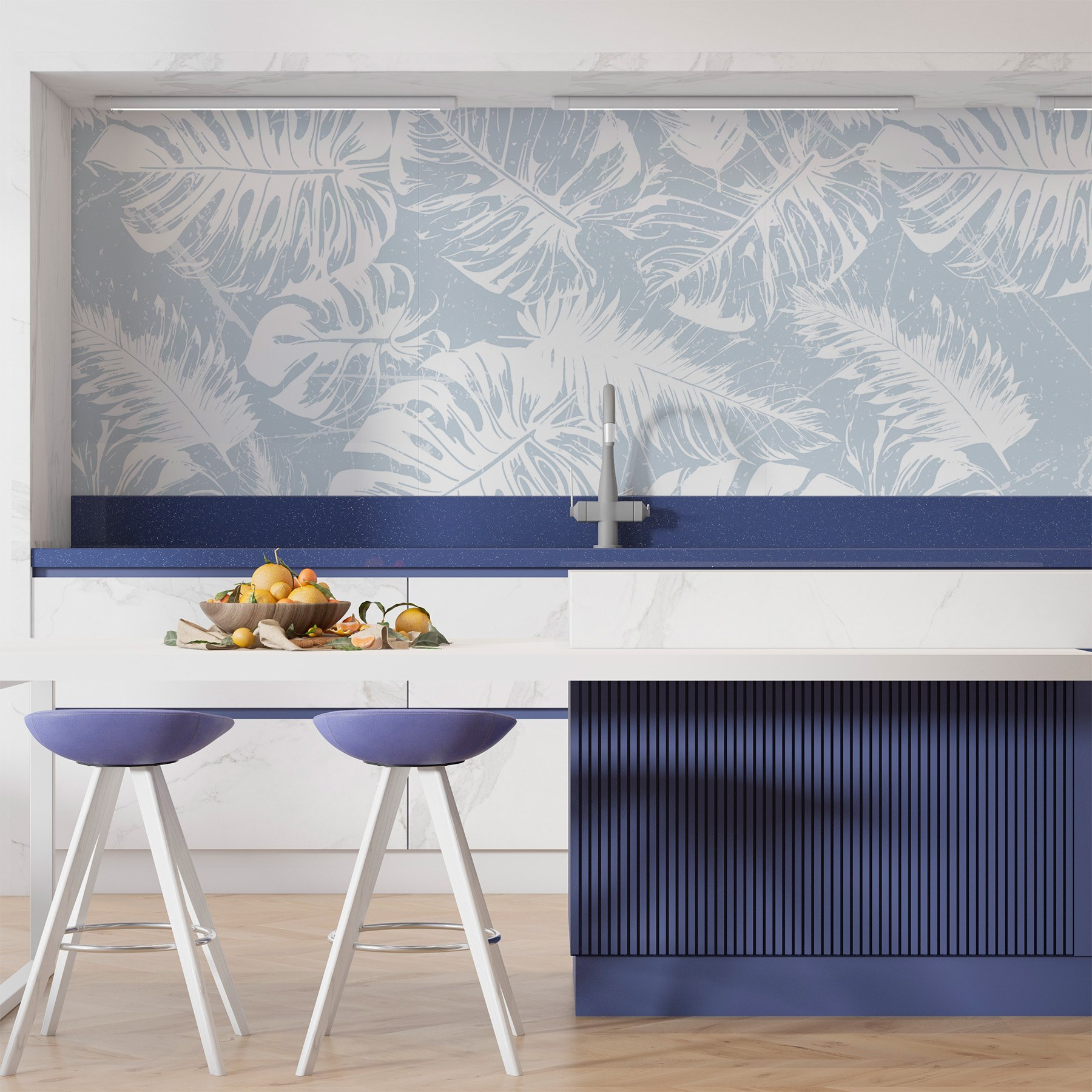 Transforme cualquier habitación en una escapada serena con este encantador mural de hojas blancas delicadamente colocadas sobre un suave fondo azul. Imagina que entras en tu salón y te sientes como en un tranquilo oasis tropical, sin la humedad ni los molestos mosquitos. La sencillez del diseño evoca las tardes de ocio con una bebida fresca en la mano. Es perfecto para crear un ambiente relajado, ya sea en un acogedor rincón de lectura o en una animada zona de comedor. Además, añade un toque de naturaleza sin necesidad de mantenimiento, ¡sin necesidad de riego! Pura felicidad en las paredes. Tanto si los invitados disfrutan del paisaje como si tú pasas con la colada, seguro que provocará sonrisas e incluso un poco de ensoñación.