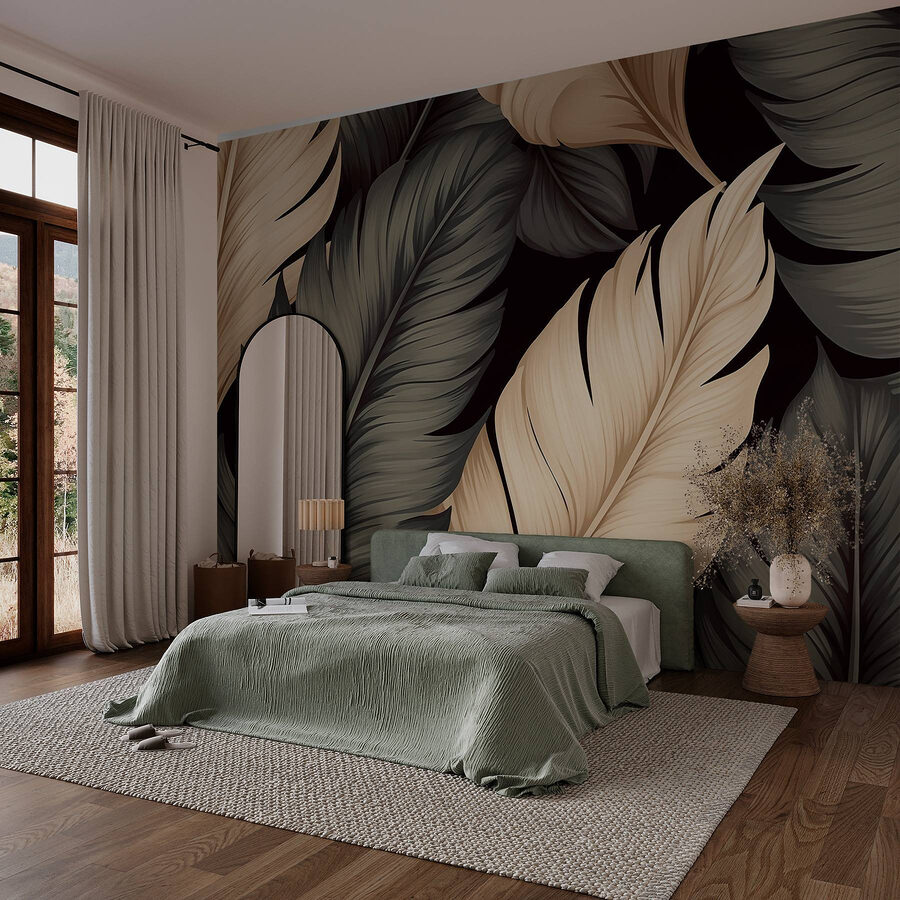 Transforme cualquier espacio con este impresionante mural de pared con grandes diseños de hojas en tonos suaves y neutros. Imagínese entrar en una habitación que parece un tranquilo refugio en el bosque, ¡sin necesidad de botas de montaña! Las suaves curvas de las hojas crean un ambiente acogedor, perfecto para un lugar sereno donde relajarse. Ya sea en un salón o en un dormitorio, este mural añade un toque de encanto natural sin complicaciones. Es como traer el aire libre al interior, pero sin los bichos. Sus amigos se maravillarán al ver cómo caldea el espacio sin esfuerzo, haciendo que cada visita parezca una pequeña escapada.