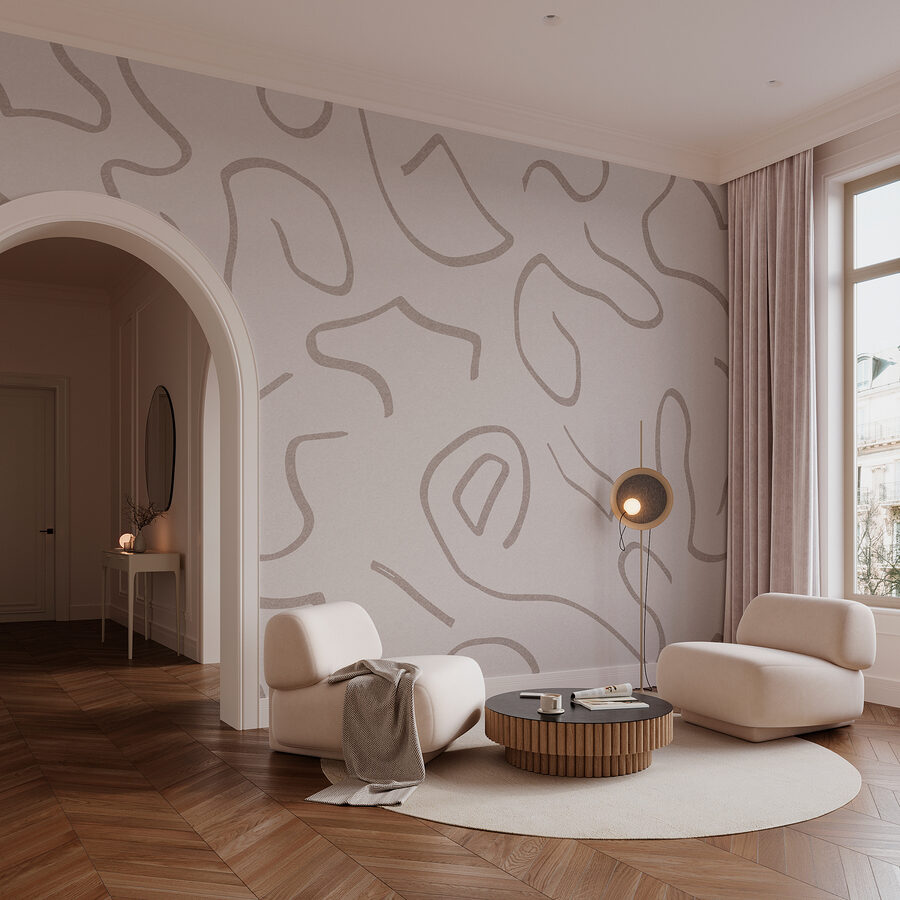 Imagínese entrar en una habitación y sentir al instante un ambiente acogedor, todo gracias a las juguetonas líneas de este mural que bailan sobre un suave fondo blanco. Es como arte en el que te puedes apoyar, invitándote a trazar esas curvas con los ojos. Perfecto para espacios que necesitan un soplo de aire fresco, este diseño añade un toque de elegancia moderna sin dejar de ser acogedor. Ya sea en un rincón alegre o en un salón relajado, imagínese a sus amigos reunidos, charlando sobre la vida y perdiéndose en esas fascinantes formas. ¿Quién iba a decir que las paredes podrían suscitar conversaciones tan alegres?
