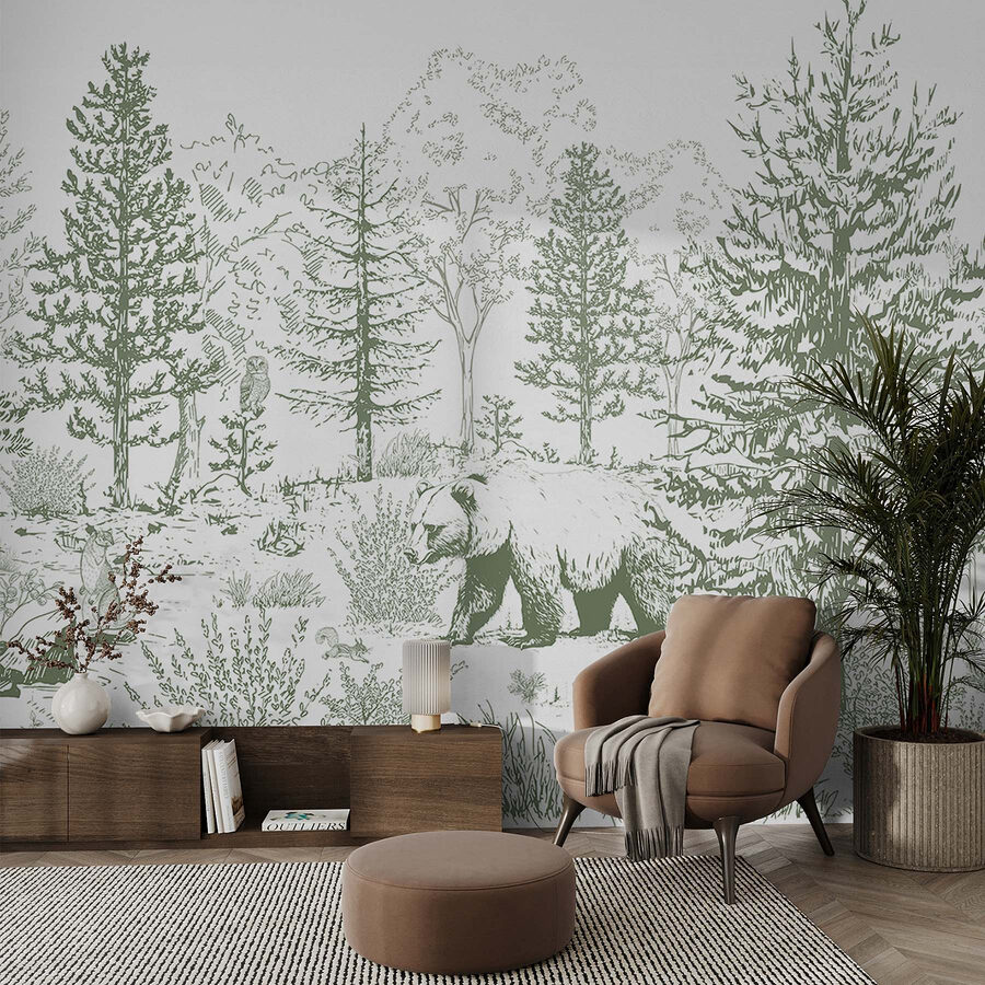 Imagina que entras en una acogedora cabaña, donde la calma del bosque te envuelve como un cálido abrazo. Este mural, con un oso serpenteando entre una exuberante vegetación, traslada esa sensación a tu espacio. Las líneas suaves y los tonos terrosos crean una atmósfera acogedora, perfecta para soñar despierto o charlar. Es como si el oso pudiera asomarse un día por tu ventana, dispuesto a compartir historias del bosque. Transforma cualquier habitación en un refugio natural, ideal para el salón o el dormitorio, donde la relajación se une a la aventura. Coge una taza de té y deja que este mural te inspire un poco de pasión por los viajes en casa.