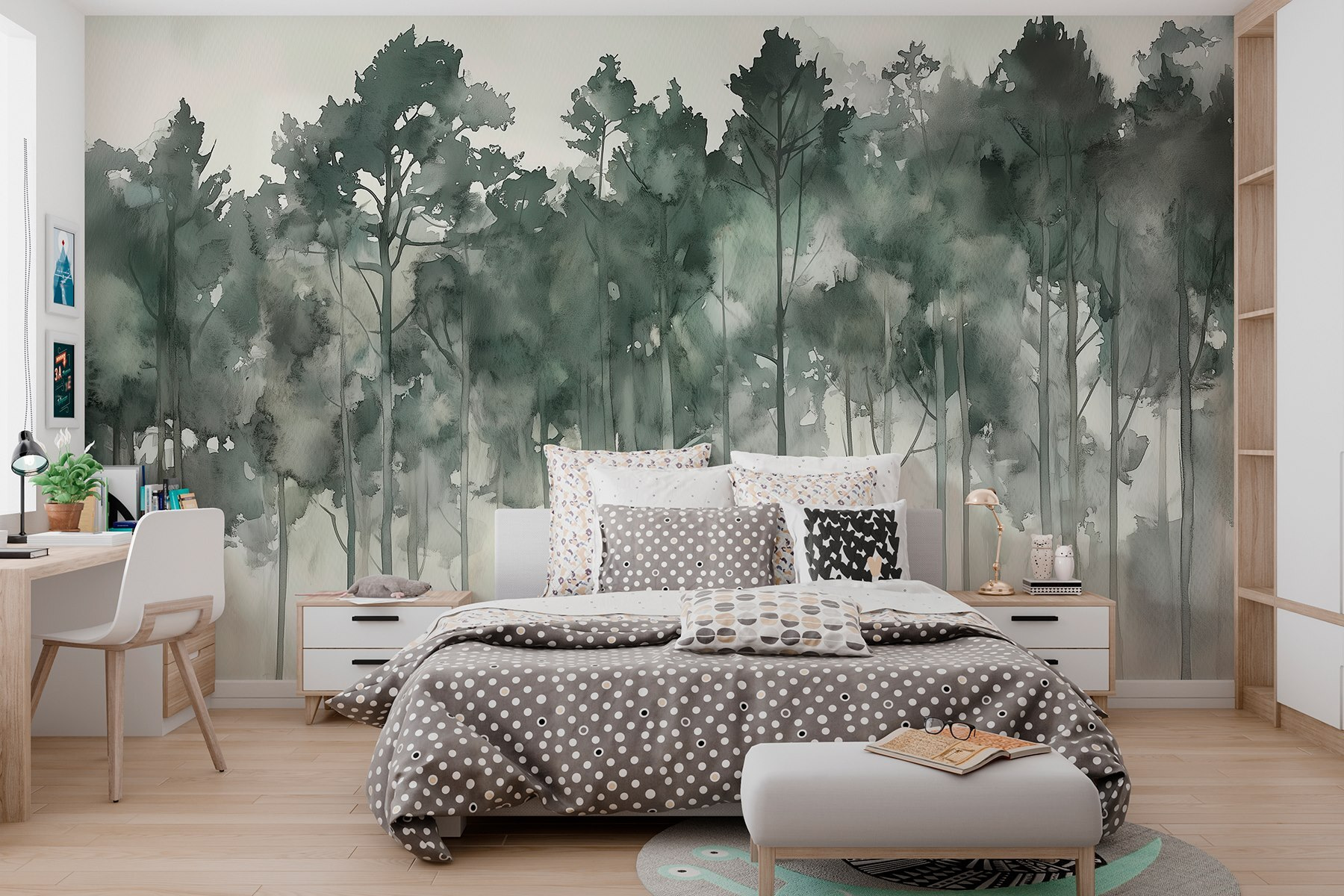 Lleve la serena belleza de la naturaleza al interior con el mural “Grupo de árboles en la niebla”. Imagine despertarse cada día en un bosque brumoso, donde los árboles susurran secretos sobre un fondo suave. Esta obra maestra de acuarela captura esa calma esquiva, perfecta para esas mañanas tranquilas con una taza de café caliente. Es como tener un poco del mundo exterior en tu salón, ¡sin los bichos, por supuesto! Los tonos apagados se mezclan a la perfección, añadiendo profundidad sin abrumar el espacio. ¿Sientes las vibraciones zen? Es un recuerdo acogedor de las escapadas tranquilas, aunque sólo sea una pared de tu casa. Alégrate, amante de la naturaleza.