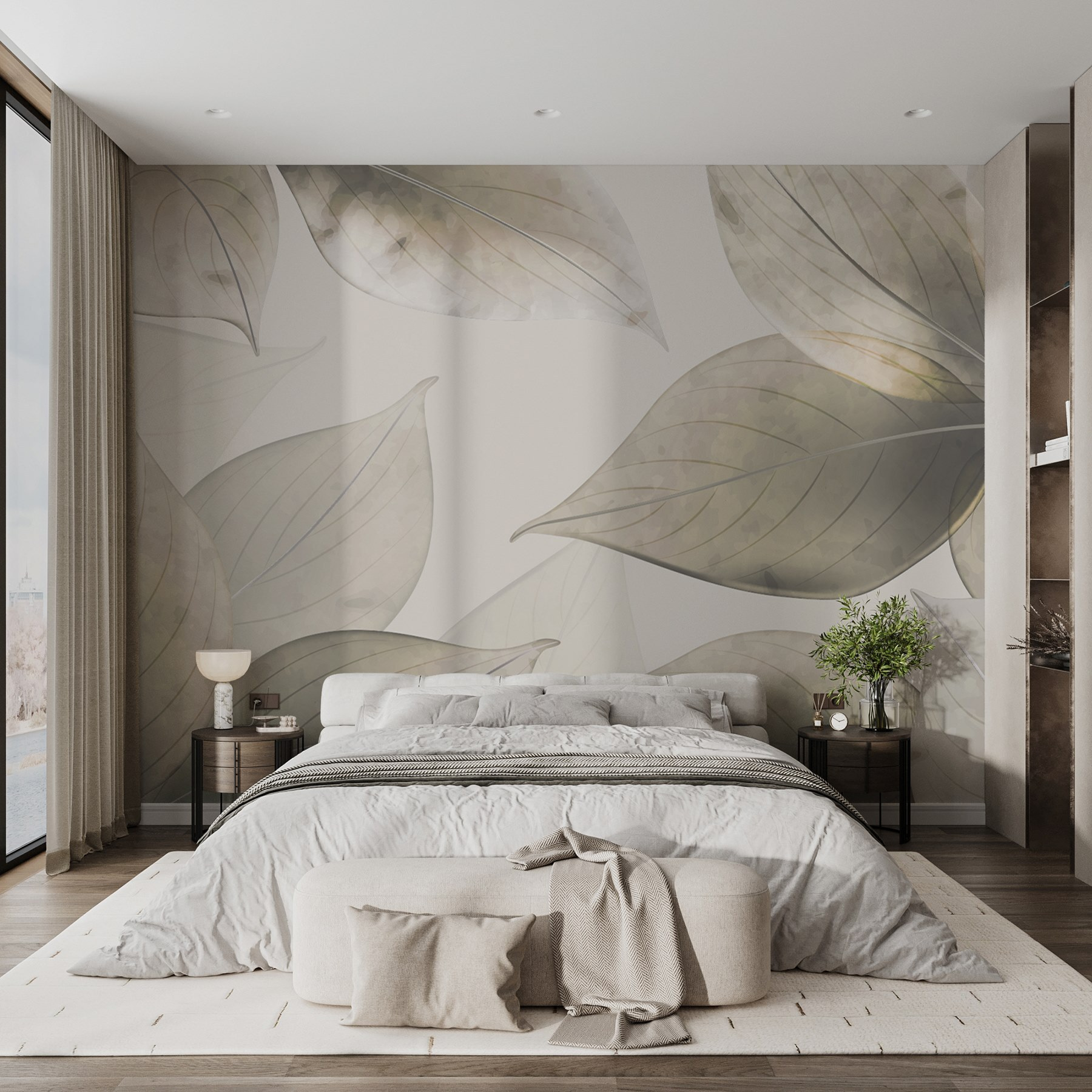 Transforma cualquier habitación con el relajante ambiente de “Hojas delicadas en tonos suaves”. Imagina que entras en tu espacio y te recibe un apacible bosque de colores suaves y apagados, ¡como si la naturaleza hubiera decidido ser sutilmente chic! Los tonos suaves de estas hojas invitan a la calma, por lo que es perfecto para un rincón de lectura acogedor o un dormitorio sereno.