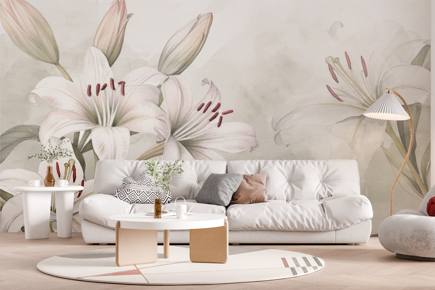 Transforme cualquier habitación en un oasis de serenidad con el mural de pared “Lirios delicados en tonos suaves”. Imagina despertarte con estas graciosas flores floreciendo suavemente en tu pared, sus colores de ensueño envolviéndote en tranquilidad. Es como tener un jardín secreto en casa, ¡sin las molestas abejas! Perfecto para un rincón acogedor o para esa pared que ha estado suplicando un poco de amor, este mural susurra paz y elegancia. Cada mirada a las suaves pinceladas de acuarela trae un poco de alegría, invitando a la calma después de un día agitado. Se preguntará cómo ha podido vivir sin él.