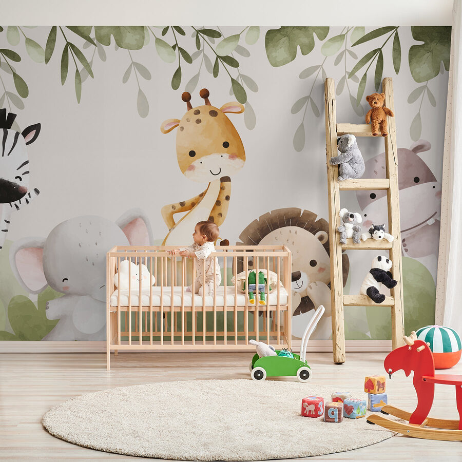 Alegra cualquier habitación con este encantador mural que muestra un juguetón desfile de adorables animales acurrucados bajo frondosas copas. Imagina una curiosa jirafa haciendo una pose, mientras un alegre elefante baila a su alrededor… ¿no es dulce? Esta caprichosa escena aporta calidez y alegría, y es perfecta para la habitación de un niño o para un acogedor rincón de lectura. Cada personaje parece tener su propia historia, que despierta la creatividad y las sonrisas. Los colores suaves y las expresiones amistosas invitan a la calma, transformando cualquier espacio en un mini refugio selvático. Créeme, ¡sonreirás cada vez que pases por delante!