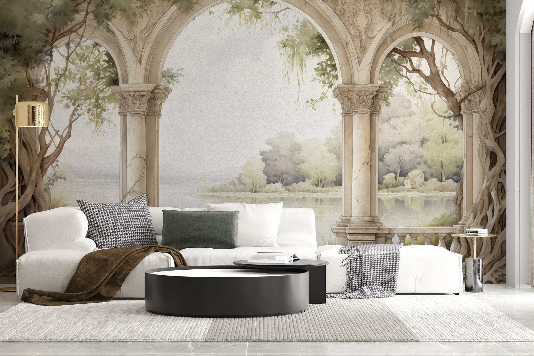 Imagina entrar cada día en un remanso de paz: este mural de acuarela captura ese sueño a la perfección. Imagina un elegante arco de piedra enmarcado por frondosos árboles, que se abre a un tranquilo lago. ¡Es como tu propia puerta a la naturaleza, justo en tu salón! Los colores suaves y las delicadas pinceladas invitan a la calma, por lo que es difícil no sentir la necesidad de quedarse allí, soñando despierto con tardes de ocio junto al agua. Tus amigos te preguntarán si has cambiado secretamente tus paredes por un encantador refugio en el jardín. ¿Quién diría que un mural podría despertar tanta alegría? No es solo decoración, es una invitación a relajarse, descansar y dejar volar la imaginación. ¡Perfecto para cualquiera que quiera llevar un pedacito de naturaleza al interior de su hogar!