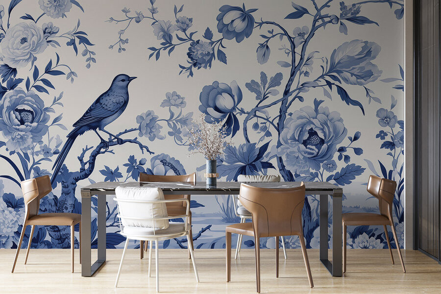 Transforme una pared lisa en un refugio de ensueño con este hermoso mural de un pájaro posado en la rama de un árbol, rodeado de delicadas flores. Es como invitar a una suave brisa a entrar en su hogar. Imagina tomarte tu café matutino y sentirte transportado a un jardín sereno, con los relajantes tonos azules y el exquisito estilo acuarela suavizando la estancia. Este mural no es solo decoración; es un tema de conversación, un momento para hacer una pausa y disfrutar de las pequeñas maravillas de la vida. Perfecto para un rincón acogedor o para esa pared que necesita un poco de amor, aporta calidez y encanto al instante. ¡Tus paredes te lo agradecerán!