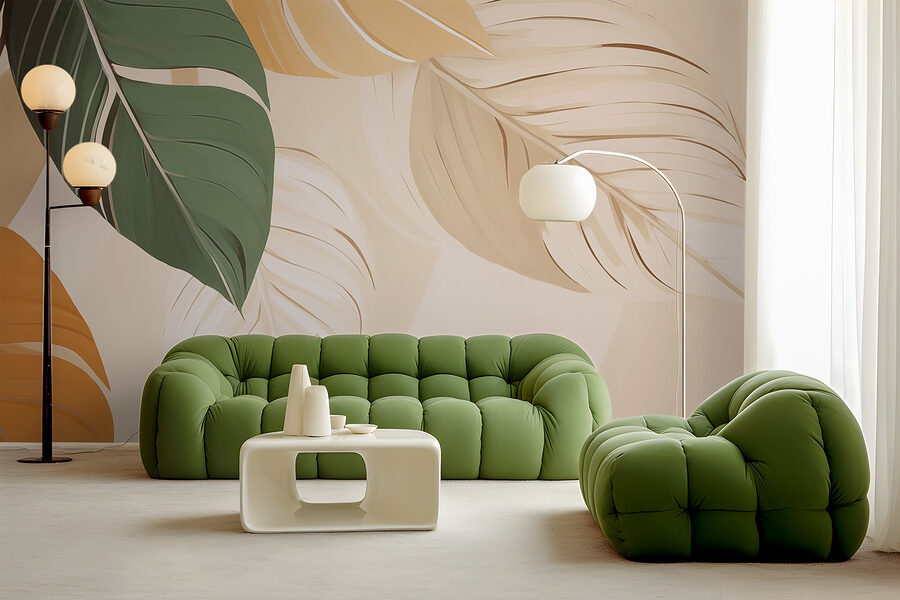 Imagina entrar en un espacio que parece un bosque bañado por el sol, rebosante de vida. «Nature’s Palette of Vibrant Leaves» lleva esa atmósfera relajante directamente a tus paredes, con exuberantes tonos verdes y cálidos colores otoñales que levantan el ánimo al instante. Es como tener un pedazo de la naturaleza en casa, sin barro en los zapatos, pero con toda su belleza. Imagina recibir a tus amigos y que no puedan evitar admirar el mural, lo que dará pie a conversaciones sobre tus excursiones favoritas o tus picnics en el bosque. Las líneas suaves y fluidas transmiten una sensación de calma, haciendo que cualquier estancia resulte acogedora y atractiva. Un telón de fondo perfecto para los domingos tranquilos o las animadas reuniones del club de lectura: ¡lo mejor de la naturaleza, sin los molestos insectos!