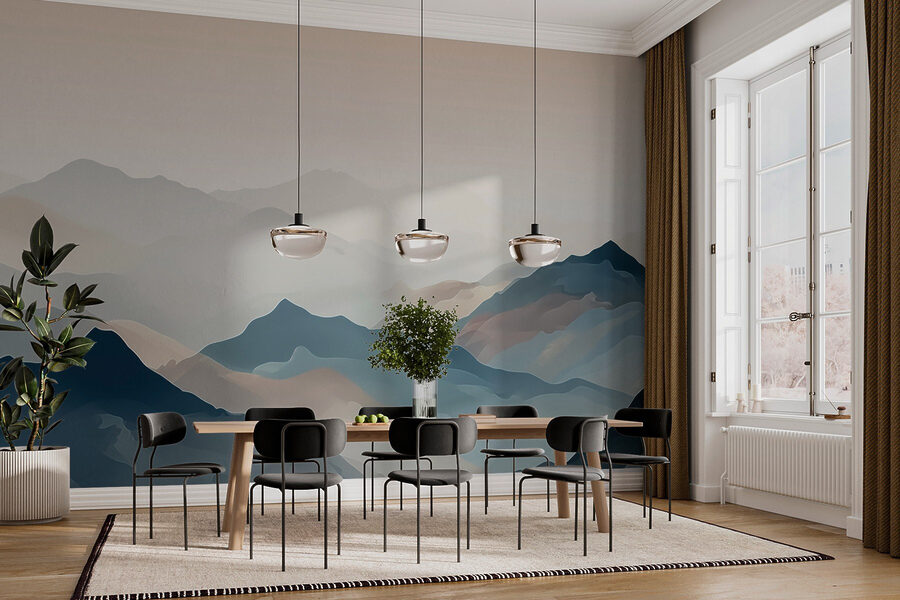 Imagina despertarte en una acogedora cabaña, con el sol asomando entre los árboles, y sentir que las montañas cobran vida ante tus ojos. Este «Mural de montaña con niebla» captura a la perfección esa atmósfera de ensueño. Las suaves pinceladas de acuarela mezclan tonos azules y terrosos, creando una atmósfera que transmite paz y tranquilidad. Es como un suave abrazo para tus paredes. Imagínatelo en un rincón de lectura, acurrucado con un buen libro y una bebida caliente, totalmente inmerso en la serena vista. Te hará sentir como si estuvieras en una aventura sin fin, incluso mientras descansas en casa. ¡No se necesita equipo de escalada!