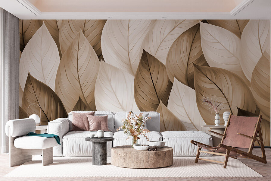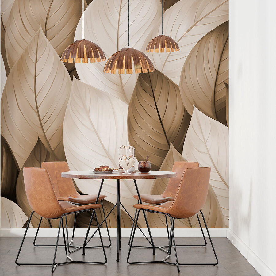 Transforme cualquier habitación en un oasis de serenidad con este impresionante mural que representa un tapiz de hojas marrones y blancas. Imagina entrar y sentirte envuelto por el tranquilo abrazo de la naturaleza. Los tonos suaves crean un ambiente cálido, perfecto para las tardes acogedoras o las mañanas soleadas. Es como tener un pedacito del aire libre dentro de tu hogar, ¡pero sin los insectos! Imagina una reunión con amigos, todos relajados y felices, simplemente porque las paredes parecen un bosque tranquilo. Perfecto para una sala de estar o incluso para un dormitorio tranquilo: ¡a solo unos pasos de unas minivacaciones diarias!