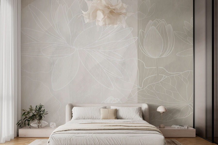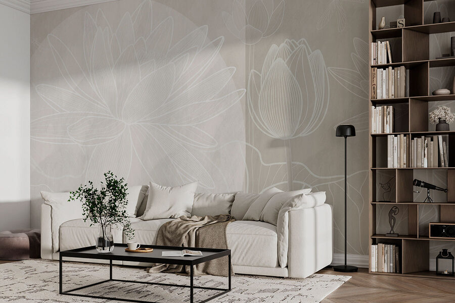 Transforme cualquier pared en un oasis de serenidad con este encantador mural que presenta delicadas flores blancas sobre un suave fondo gris. Es como traer un pequeño jardín al interior, sin los molestos insectos ni el clima impredecible. Imagínese un acogedor rincón para tomar café donde se reúnen los amigos, cada uno admirando la suave elegancia de la pared. El sutil efecto acuarela añade un toque de ensueño, invitando a momentos de pausa y reflexión. Perfecto para cualquiera que anhele un toque de naturaleza sin necesidad de regar las plantas o recordar evitar la luz solar directa. Este mural no es solo decoración, es una sensación.