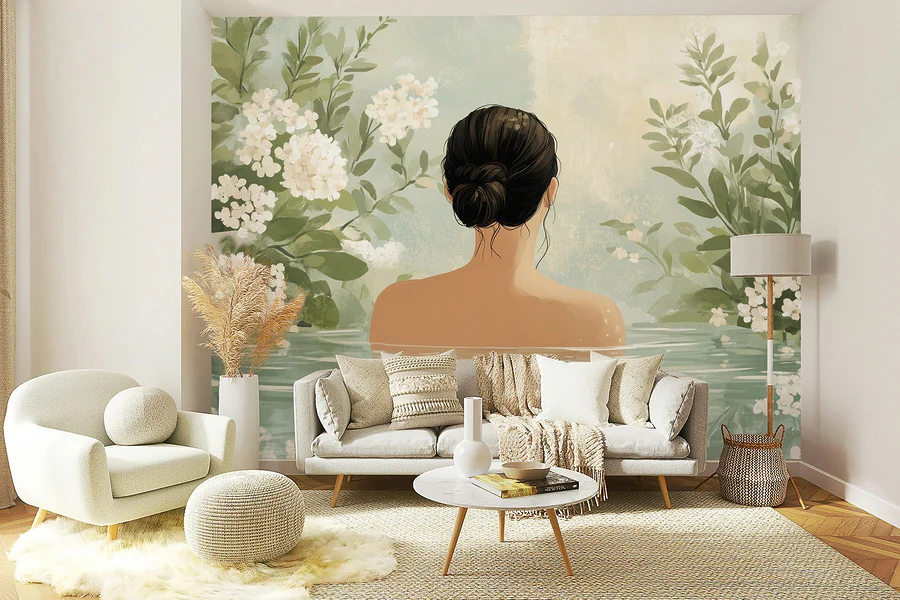 Transforma tu espacio con el fascinante mural «Mujer en el agua con flores». Esta impresionante obra captura un momento sereno, en el que una hermosa figura se sumerge suavemente, rodeada de delicadas flores. Imagínate sentado en tu sofá, con una taza de té en la mano, mientras contemplas esta relajante escena: es como unas minivacaciones en tu salón. Los colores suaves y el ambiente tranquilo lo hacen perfecto para un dormitorio acogedor o una oficina tranquila. ¿Quién no se sentiría relajado contemplando esas aguas de ensueño? Es una decoración inspirada en la naturaleza que invita a la serenidad y aporta un toque de elegancia a cualquier estancia, haciendo que cada mirada sea una pequeña escapada a la felicidad. ¡Añade un toque de calma a tu vida!