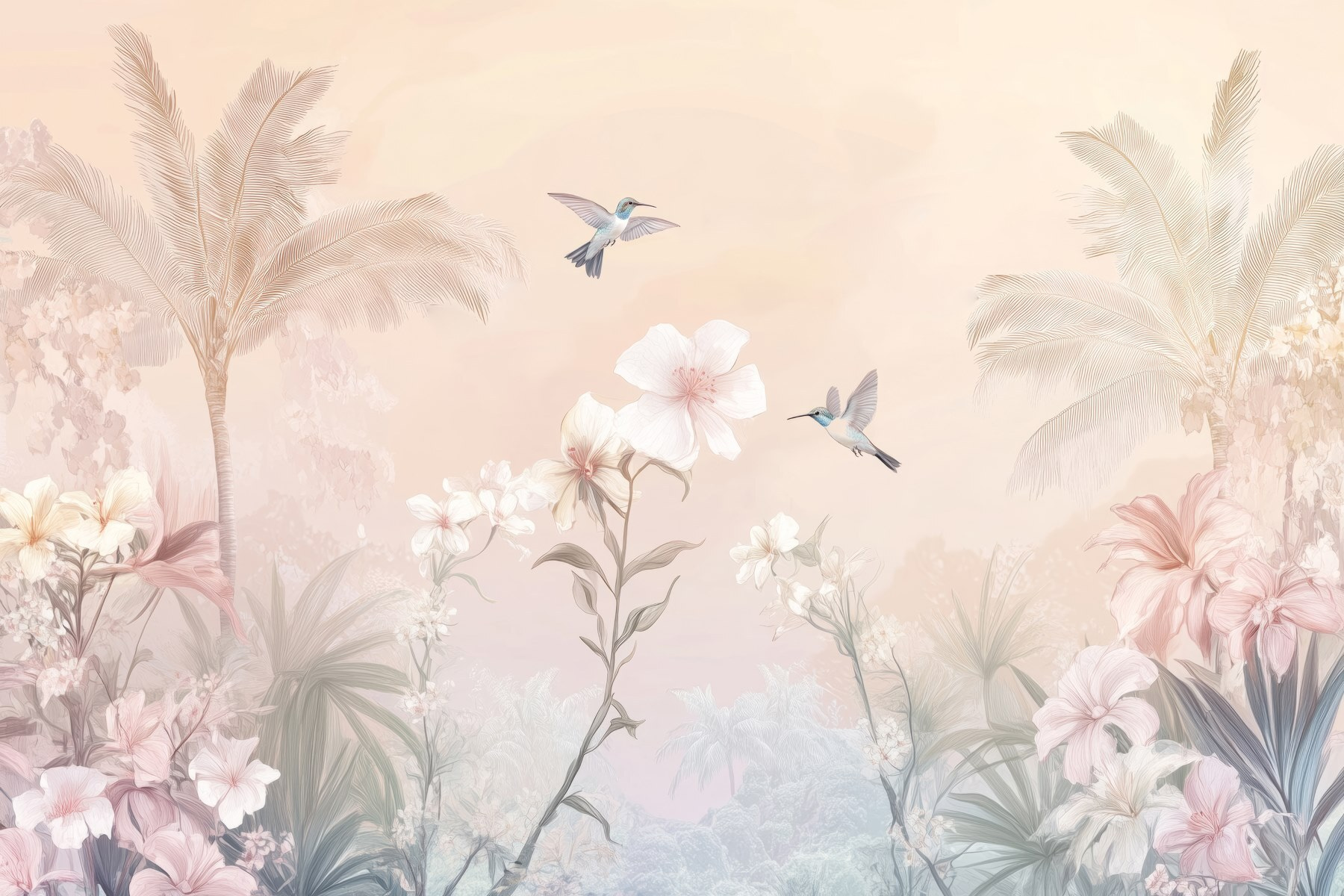 Transforma tu espacio con este encantador mural, «Grupo de pájaros volando sobre flores». Imagínatelo: pájaros vibrantes revoloteando sobre exuberantes flores, aportando un toque de naturaleza a tu hogar. No se trata de una simple decoración de pared, sino de un recordatorio diario de la belleza que hay más allá de tus cuatro paredes. Imagina tomarte un café, soñando despierto mientras contemplas esta maravilla tropical. Los colores suaves crean un ambiente acogedor, lo que lo convierte en el telón de fondo perfecto para reuniones íntimas o momentos de tranquilidad en soledad. Es como un pequeño pedazo de paraíso, ¡pero sin arena! Las flores susurran historias de brisas cálidas, ¿y esos pájaros? Puede que te inspiren a organizar una fiesta de baile espontánea. ¡Sumérgete en este paraíso floral!