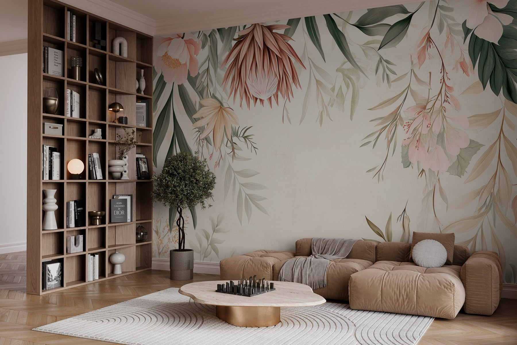 Transform any space into a serene retreat with this enchanting wall mural! Aptly named “Floral Border with Leaves and Flowers,” it’s like bringing a dreamy garden indoors—without the need for a green thumb. The soft blush and earthy greens create a refreshing vibe, perfect for waking up a boring wall. Imagine sipping coffee in your cozy nook, surrounded by these blooms, feeling instantly uplifted. Plus, the soothing colors can calm even the most chaotic of days. It’s not just decor; it’s a gentle reminder that beauty is all around. A splash of nature? Yes, please!