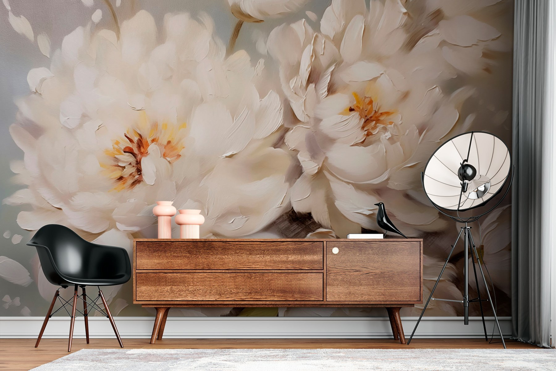 Transforme su espacio con este encantador mural de pared con delicadas flores blancas que parecen brotar de la pared. Imagine que entra en un jardín sereno cada vez que entra en la habitación: los suaves pétalos captan la atención, invitando a la calidez y la calma. Este impresionante mural es como un soplo de aire fresco, perfecto para iluminar cualquier rincón de su hogar. Imagínese tardes tranquilas tomando el té, rodeado de esta belleza pacífica. Es más que decoración; es un trocito de naturaleza que susurra elegancia. También es un punto de encuentro perfecto para los invitados.