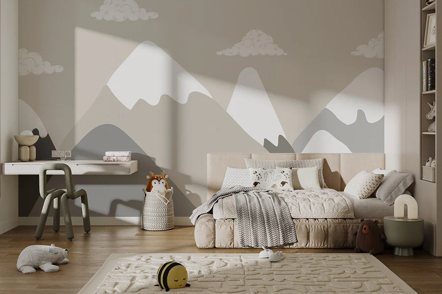 Transforma tu espacio con este impresionante mural de cordillera, donde suaves nubes bailan sobre picos serenos. ¡Es como tener una escapada en miniatura en tu pared! Imagínate tomando café mientras contemplas esas maravillosas montañas onduladas. No solo son bonitas, sino que invitan a soñar despierto y a sentir un poco de pasión por los viajes. Además, los colores apagados combinan perfectamente con cualquier habitación. Ya sea en el salón, en un rincón de lectura acogedor o incluso en la oficina de casa, este mural aporta una atmósfera relajante. Es la forma que tiene la naturaleza de decir: «Respira hondo y relájate». Piénsalo: cada día podría empezar y terminar con una vista como esta.