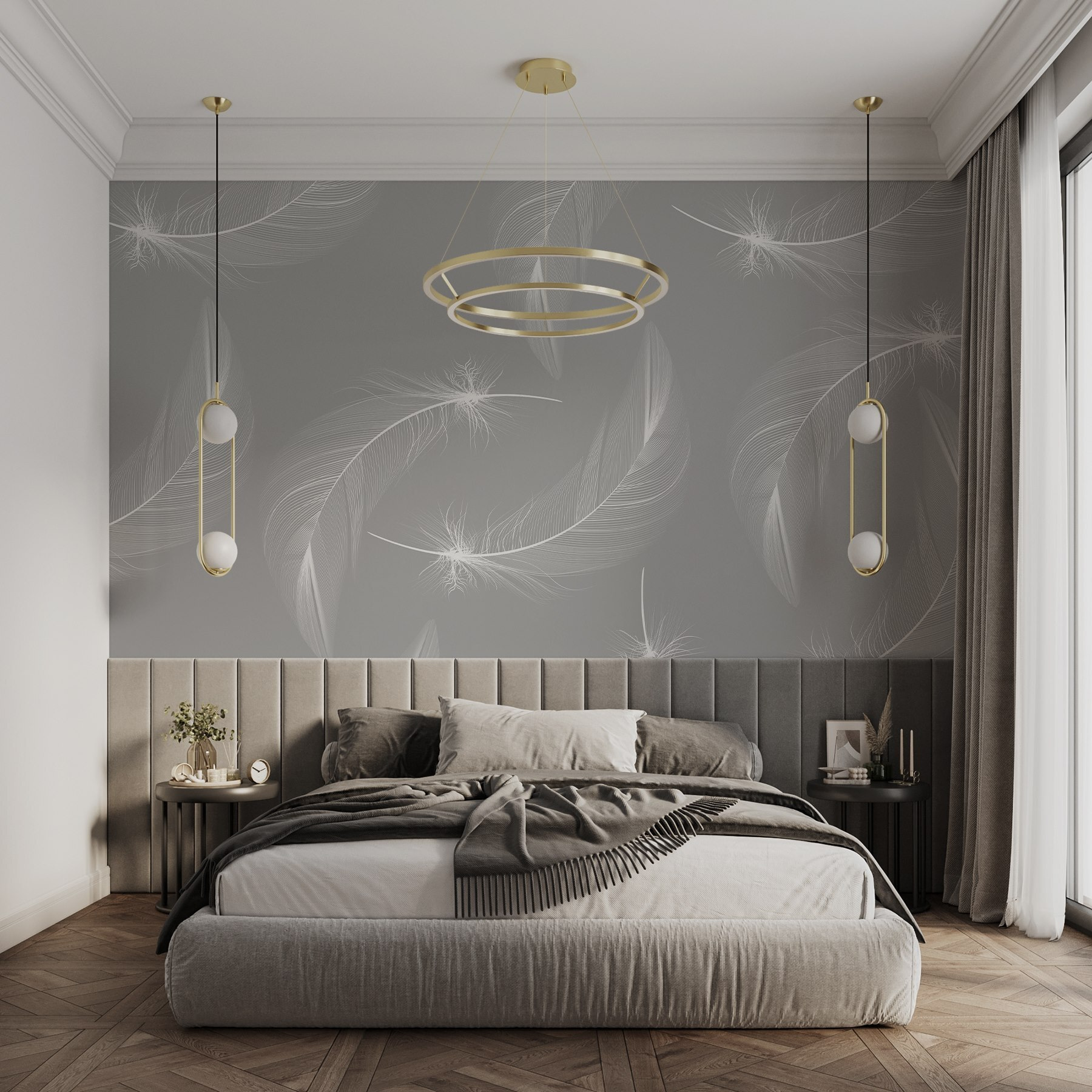 Transforma cualquier espacio en un santuario de serenidad con estos murales de pared que muestran delicadas plumas blancas bailando sobre un suave fondo gris. Es como tener una suave brisa en el interior, susurrando elegante calma. Imagina entrar en una habitación que se siente instantáneamente más ligera, donde cada mirada te transporta a una escapada de ensueño. Perfectas para un rincón de lectura acogedor o un dormitorio tranquilo, estas plumas suavizan el ambiente. Invitan a soñar despiertos e inspiran tranquilidad, por lo que es difícil no sonreír un poco. ¿Quién no se sentiría animado ante una vista tan encantadora?