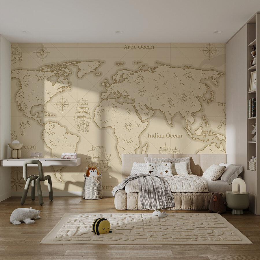 Transforma cualquier espacio con el «Mural de pared Mapa del mundo». No es solo un mural, es como una acogedora invitación a viajar por el mundo sin necesidad de pasaporte. Imagínese: un ambiente suave y vintage con barcos clásicos y colores suaves que dan vida a las paredes y despiertan sueños despiertos de lugares lejanos. Perfecto para esa pared vacía que le mira fijamente o para un rincón de lectura, podría inspirar historias, risas y tal vez incluso algunos debates amistosos sobre dónde visitar a continuación. ¿Quién no querría recorrer con el dedo los continentes mientras toma un café? No es solo decoración, es una aventura que espera a desarrollarse.