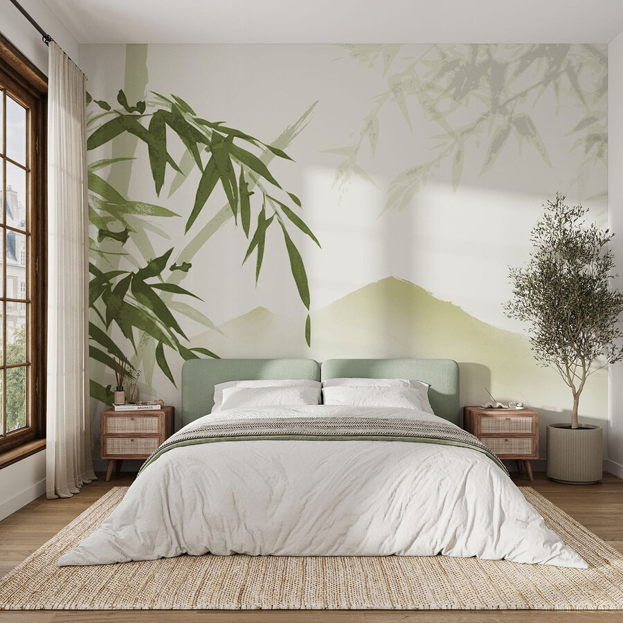 Transforma una pared lisa en un remanso de paz con el mural «Calming Bamboo and Mountain Landscape» (Bambú relajante y paisaje montañoso). Imagina entrar en tu habitación y sentir al instante una oleada de tranquilidad que te envuelve. Los suaves tonos verdes y las delicadas imágenes de bambú casi te permiten oír el susurro de las hojas en un bosque azotado por la brisa. Imagínate tomando té mientras contemplas esas montañas… ¡Ah, nada como unas minivacaciones en casa! Es perfecto para crear un rincón acogedor o añadir un toque de naturaleza a cualquier espacio. Ideal para esos momentos en los que solo necesitas hacer una pausa y respirar. Entonces, ¿por qué no dejar entrar un poco de naturaleza?