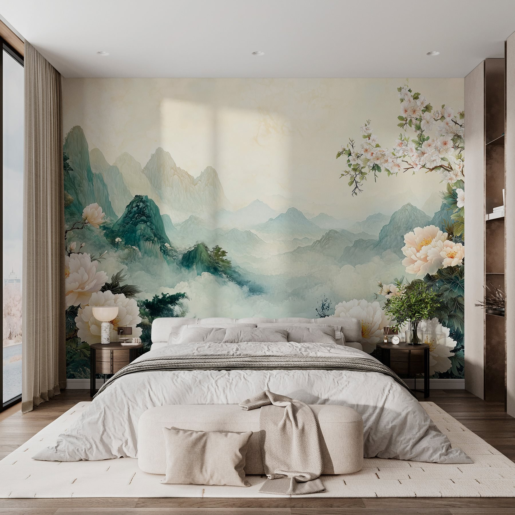 Transforme su espacio con este encantador mural de pared con delicadas flores y majestuosas montañas. Imagínese entrar en una habitación donde las suaves flores parecen susurrar secretos de jardines serenos, mientras que los picos distantes evocan una sensación de aventura. Imagínese relajándose en el sofá, tomando el té, como si estuviera en un tranquilo jardín japonés. Este mural no es sólo arte; lleva la calma de la naturaleza al interior, invitando a la calidez y al asombro. Ya sea en un rincón acogedor o en un salón lleno de vida, aporta carácter y despierta la alegría con cada mirada. ¿Un tema de conversación? Por supuesto.