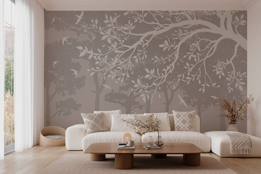 Transforma tu espacio con este impresionante mural que representa un sereno grupo de árboles, con pájaros volando por el aire. Es como adentrarse en un bosque tranquilo, sin insectos ni humedad. Imagina una acogedora sala de estar o un relajante dormitorio donde esta obra lleva un susurro de naturaleza al interior. Las elegantes ramas de los árboles bailan por tu pared, creando una atmósfera de tranquilidad que casi te hace olvidar esa pila de ropa sucia en la esquina. Ya sea un rincón creativo o un rincón de lectura, este mural envuelve sin esfuerzo cualquier habitación en calidez y encanto. Además, es un tema de conversación instantáneo: ¿quién no querría charlar sobre su ambiente de jungla urbana? Un toque de naturaleza nunca viene mal, ¿verdad?