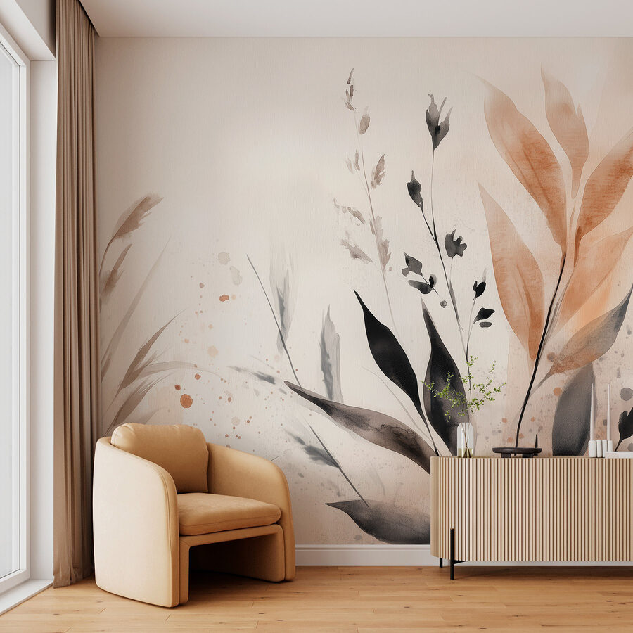 Imagina entrar en un pequeño oasis sereno justo en casa con “Suaves tonos del abrazo de la naturaleza”. Este mural prácticamente susurra paz, con suaves hojas de acuarela bailando sobre un delicado fondo. Es como invitar a una suave brisa a tu salón, ligeramente mágico, ¿verdad? Perfecto para soñar despierto o simplemente relajarse tras un largo día, trae el aire libre al interior, pero sin los molestos insectos. Imagine un rincón de lectura acogedor o un comedor animado transformado en un refugio tranquilo. Se trata de esa sensación de serena elegancia que te hace querer tomar un té y saborear el momento.