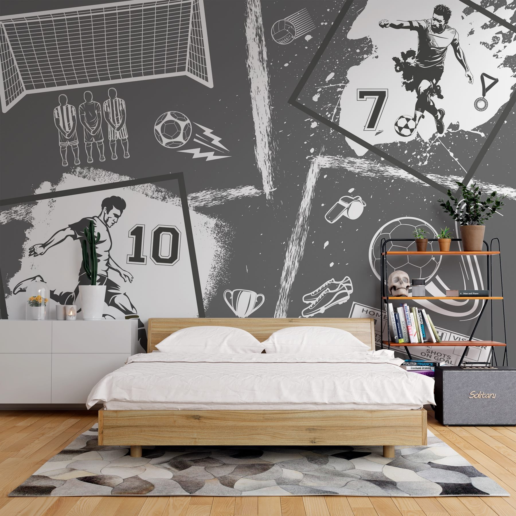 ¡Aumenta la energía en cualquier habitación con este dinámico mural que representa los momentos más emocionantes del fútbol! Perfecto tanto para los aficionados acérrimos como para los espectadores ocasionales, captura la emoción de cada patada y cada gol en un elegante diseño gráfico. Imagina recibir a tus amigos para ver el gran partido: no se trata solo del partido, sino de empaparse del ambiente, y este mural lleva esa vibración directamente a tu pared.