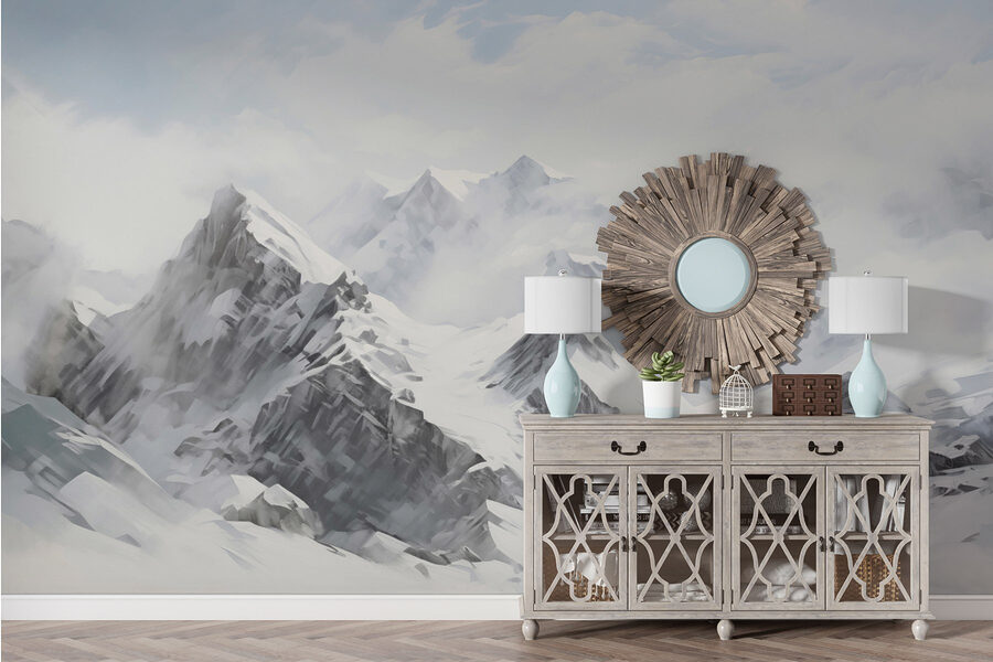 Transforma tu espacio en un paraíso invernal con este impresionante mural que muestra una cordillera nevada asomándose entre nubes esponjosas. ¡Es como tener un pedazo de la naturaleza en tu salón! Imagínate tomando un chocolate caliente, cómodamente instalado mientras contemplas majestuosos picos que parecen susurrar historias de aventura y serenidad. Perfecto para esos días en los que una escapada parece estar a kilómetros de distancia, este mural aporta un soplo de aire fresco al interior. Imagínatelo: tus amigos vienen a visitarte, se quedan boquiabiertos y te preguntan si realmente has escalado esas montañas. ¡Es ese tipo de ambiente!