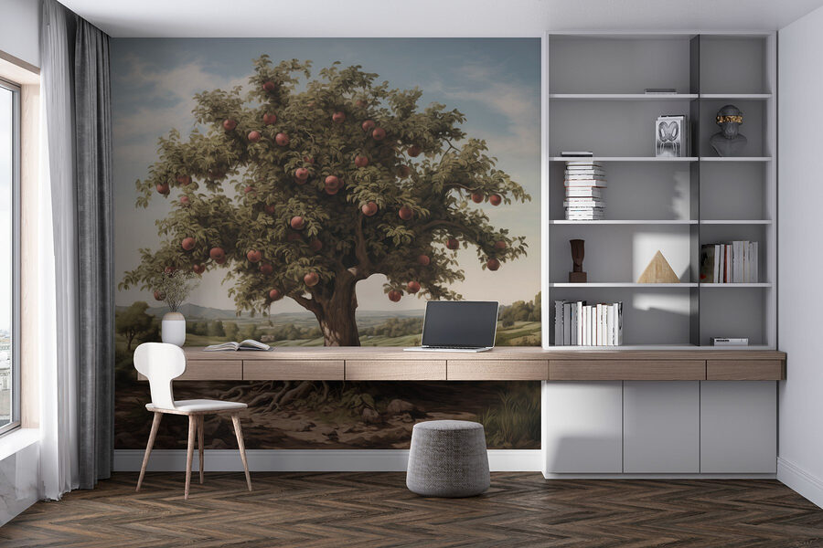 Transforma tu espacio en un refugio sereno con el encantador mural «Árbol con manzanas». Imagina el suave susurro de las hojas y el dulce y fresco aroma del otoño, ya que esta belleza lleva la naturaleza al interior. Esas manzanas jugosas casi parecen invitarte a hacer un picnic justo debajo de sus ramas. Perfecto para salones, rincones acogedores o incluso una cocina peculiar, te hace sentir como si estuvieras bebiendo sidra en un día soleado. Además, ¿a quién no le gustaría tener un tema de conversación que prácticamente invita a hacer un pícnic? Un toque de fantasía y mucha naturaleza: ¡una deliciosa adición a cualquier decoración!