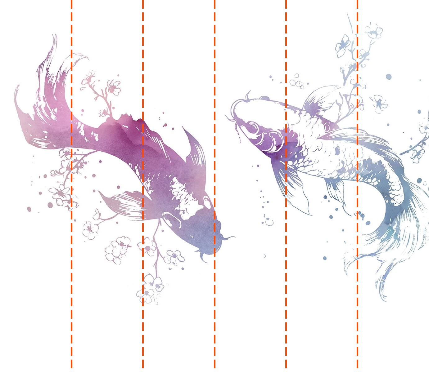 Fotomurales Dos peces con salpicaduras de acuarela