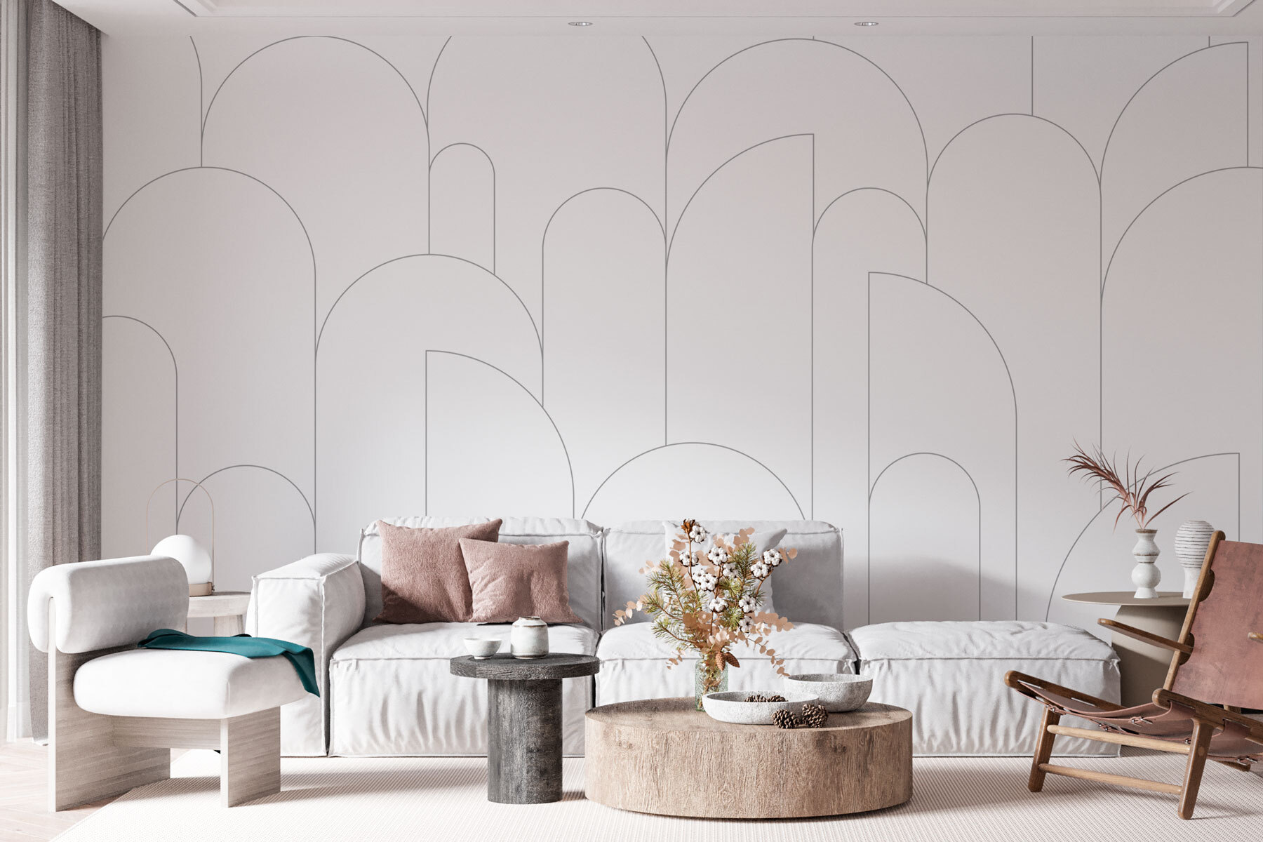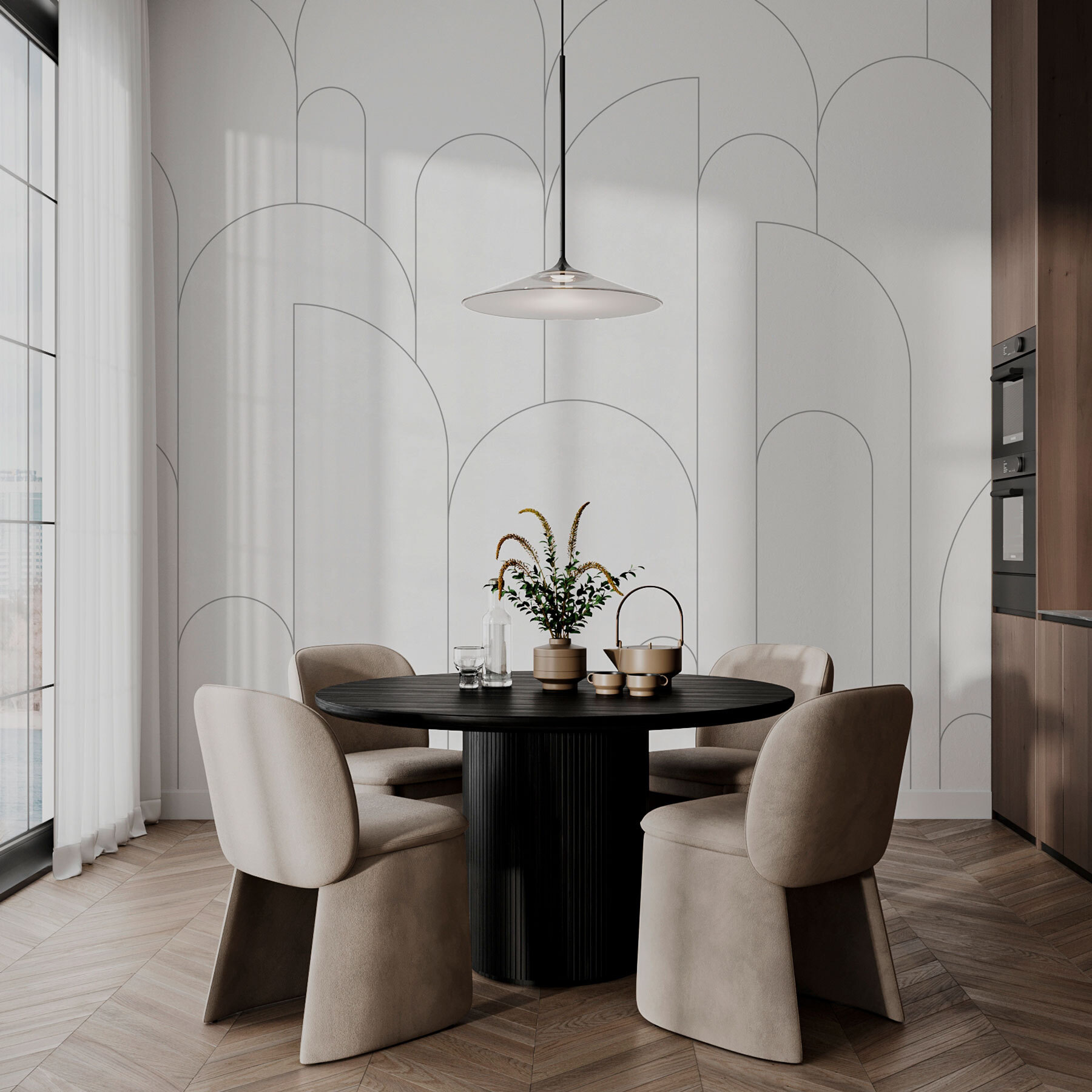 Las formas juguetonas bailan por la pared, despertando la curiosidad y la conversación, mientras que la combinación de colores minimalista mantiene la sobriedad. Ya sea en el salón o en la oficina de casa, crea el escenario perfecto para la creatividad. Imagínate recibir a tus amigos, con una copa en la mano, con esta belleza como telón de fondo. Un mural que no solo decora, sino que también invita a contar historias y a reír. ¿Qué más se puede pedir?