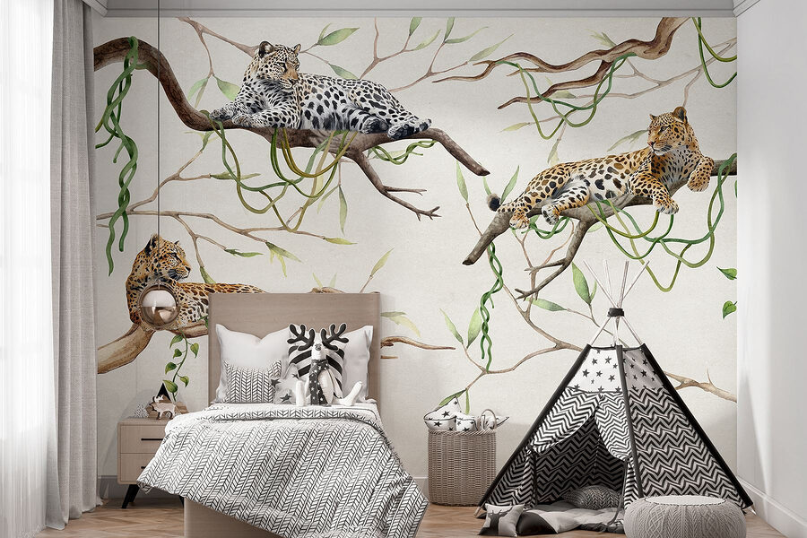 Transforma tu espacio en un oasis tropical con este impresionante mural de leopardos descansando sobre las ramas. Imagina entrar en la habitación y sentir la calidez de la selva, mientras estos majestuosos felinos parecen vigilarte, perfectamente relajados entre la vibrante vegetación. Tiene esa mezcla perfecta de lo salvaje y lo sereno, aportando un toque de naturaleza al interior sin tener que preocuparse por las travesuras de los animales reales. Tus amigos incluso podrían bromear diciendo que eres un fotógrafo de vida salvaje en secreto, pero sin las botas de montaña y las picaduras de mosquitos. Así que adelante, deja que tus paredes cuenten una historia y envuelva tu espacio en un acogedor y exótico refugio. Perfecto para salones o para crear un ambiente único en la oficina, este mural está listo para dar vida a cualquier habitación con su belleza natural.