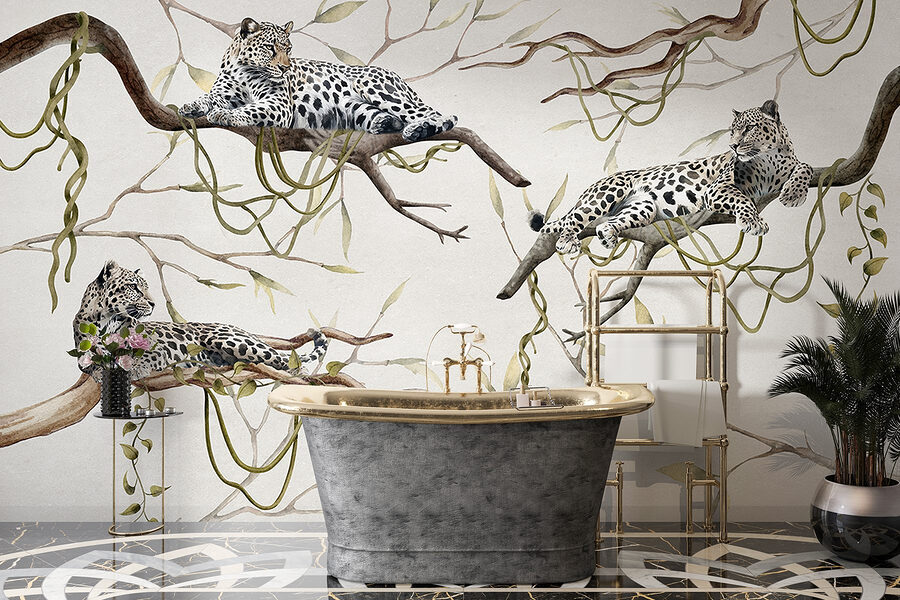 Transforma tu espacio en un oasis salvaje con este impresionante mural que muestra un grupo de leopardos descansando sobre las ramas. Imagina entrar en la habitación y sentir cómo la esencia de la naturaleza te envuelve: esos patrones de manchas y poses elegantes acaparan toda la atención. Perfecto para ese rincón que necesita un poco de espíritu, o tal vez para despertar envidia en tu próxima reunión del club de lectura. Es como tener un pedazo de la selva en casa, pero sin mosquitos. Además, ¿quién no querría despertarse con estas majestuosas criaturas? Se trata de crear un ambiente armonioso, ¿no?