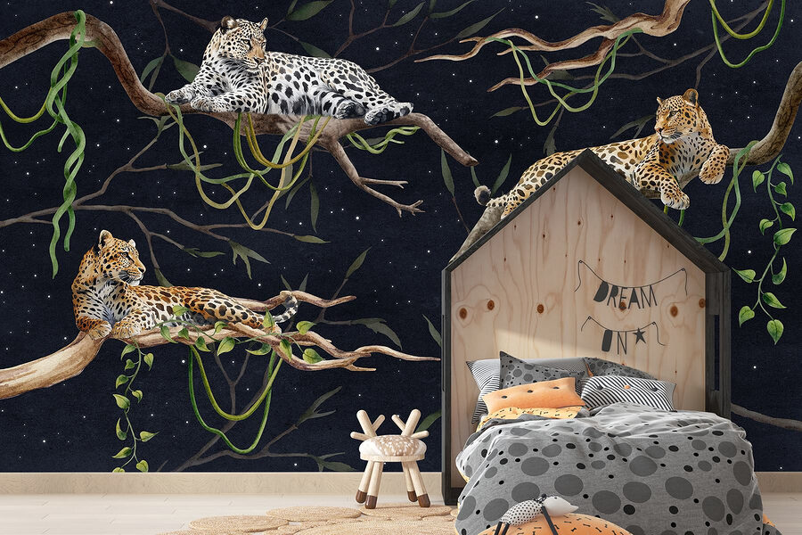 Transforma tus paredes en un oasis salvaje con este impresionante mural de leopardos descansando con elegancia sobre las ramas. Es como invitar a un pedazo de la selva a tu salón, ¡sin la humedad ni los molestos mosquitos! Imagínate tomando tu café matutino mientras ellos te hacen compañía, con un aspecto tan natural y desenfadado. Los colores vivos y los detalles intrincados son un festín para la vista, perfectos para añadir un toque de elegancia a cualquier espacio. Tanto si eres un amante de la naturaleza como si simplemente aprecias el arte único, la calidez y el encanto de este mural pueden dar pie a conversaciones y crear un ambiente acogedor. Además, ¿a quién no le gustaría tener un trío de leopardos merodeando por ahí? ¡Puede que se conviertan en el nuevo punto focal de tu hogar!
