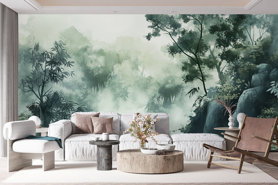 Adéntrate en un refugio de ensueño con el mural «Foggy Forest»: es como llevar un pedazo de naturaleza al interior, sin el barro en los zapatos. Imagínate tomando café, envuelto en una manta acogedora, con este encantador telón de fondo susurrando historias de mañanas tranquilas y brisas suaves. ¿Esos árboles que se yerguen altos y orgullosos? Son tus nuevos compañeros relajantes, que te recuerdan que debes reducir un poco el ritmo. La suave niebla añade un toque de misterio, haciendo que parezca que el bosque te invita a una aventura. Perfecto para una sala de estar o un rincón de lectura tranquilo, es el tipo de decoración que te hace querer respirar profundamente y dejar atrás el caos del exterior.