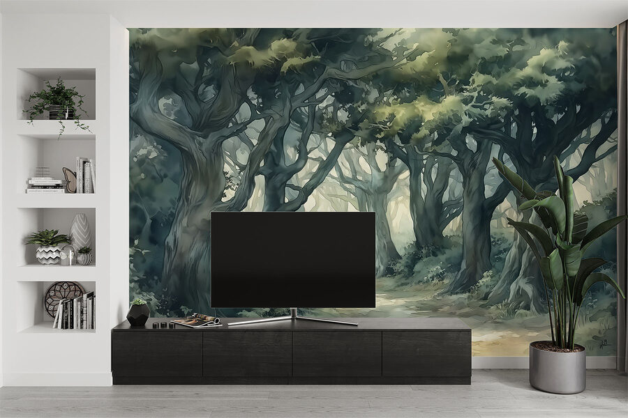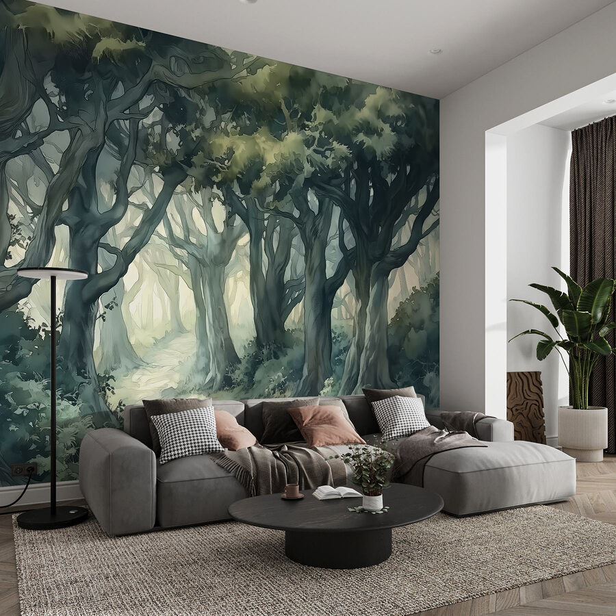 Los tonos suaves y los árboles detallados crean un ambiente tranquilo, ideal para un rincón de lectura acogedor o un dormitorio sereno. Imagina que te sientas con una taza de té y que la relajante escena te envuelve como un cálido abrazo. ¿Y quién dijo que la naturaleza no puede volver a casa? Añada este mural y, de repente, soñar despierto con aventuras en el bosque se convertirá en algo cotidiano.