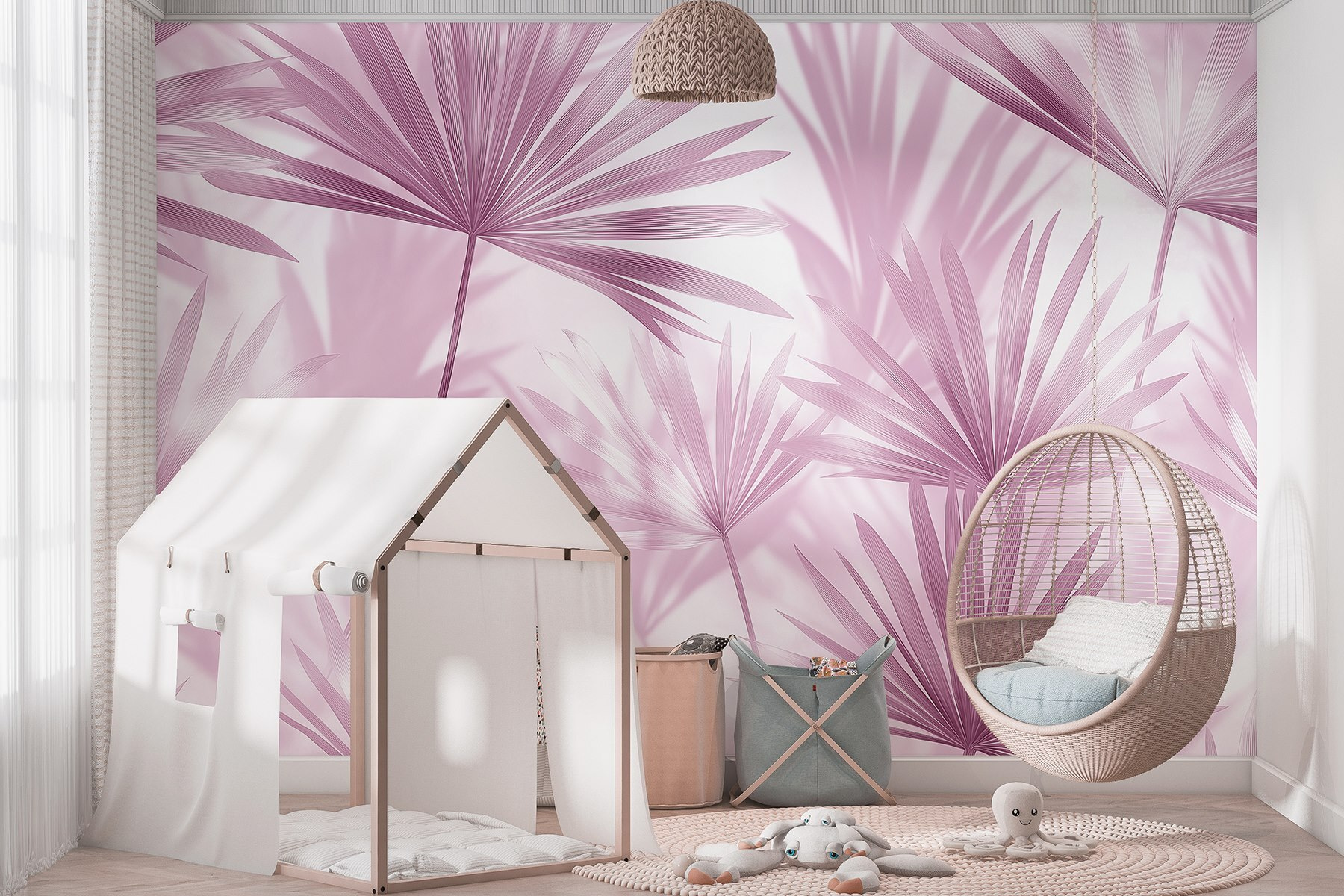 Transforme sus paredes en un paraíso tropical con «Delicate Leaves in Soft Hues». Este precioso mural captura la esencia de la naturaleza, combinando tonos suaves con detalles intrincados que lo convierten en un soplo de aire fresco. Imagina tomarte un café en un rincón acogedor, con la suavidad de estos motivos de hojas envolviéndote como un cálido abrazo. Cada mirada se siente como una pequeña escapada, unas minivacaciones en tu salón. Además, ¡no hace falta dedicarse a la jardinería! Es como traer el aire libre al interior, sin los insectos. Perfecto para aquellos que anhelan un ambiente sereno con un toque de fantasía.