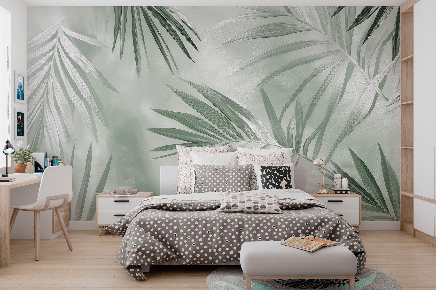 Transforma cualquier habitación en un exuberante refugio con este mural «Nature’s Tranquil Green Foliage» (El tranquilo follaje verde de la naturaleza). Imagina entrar en una serena selva con suaves tonos verdes que bailan por tus paredes, haciéndote sentir como si estuvieras rodeado de naturaleza, ¡aunque solo tengas una ventana con vistas a la ciudad! Las suaves pinceladas de las hojas de palmera susurran relajación, ideales para crear un rincón acogedor o un fondo sereno para tu esterilla de yoga. Piensa en tardes tranquilas con un buen libro, una taza de té y el aroma de la tierra fresca flotando en el aire. Es como traer un poco de paraíso tranquilo a tu hogar. Perfecto para cualquiera que quiera cambiar la jungla de asfalto por un poco de felicidad botánica. ¿Qué me dices? ¡Es hora de renovar tu hogar!