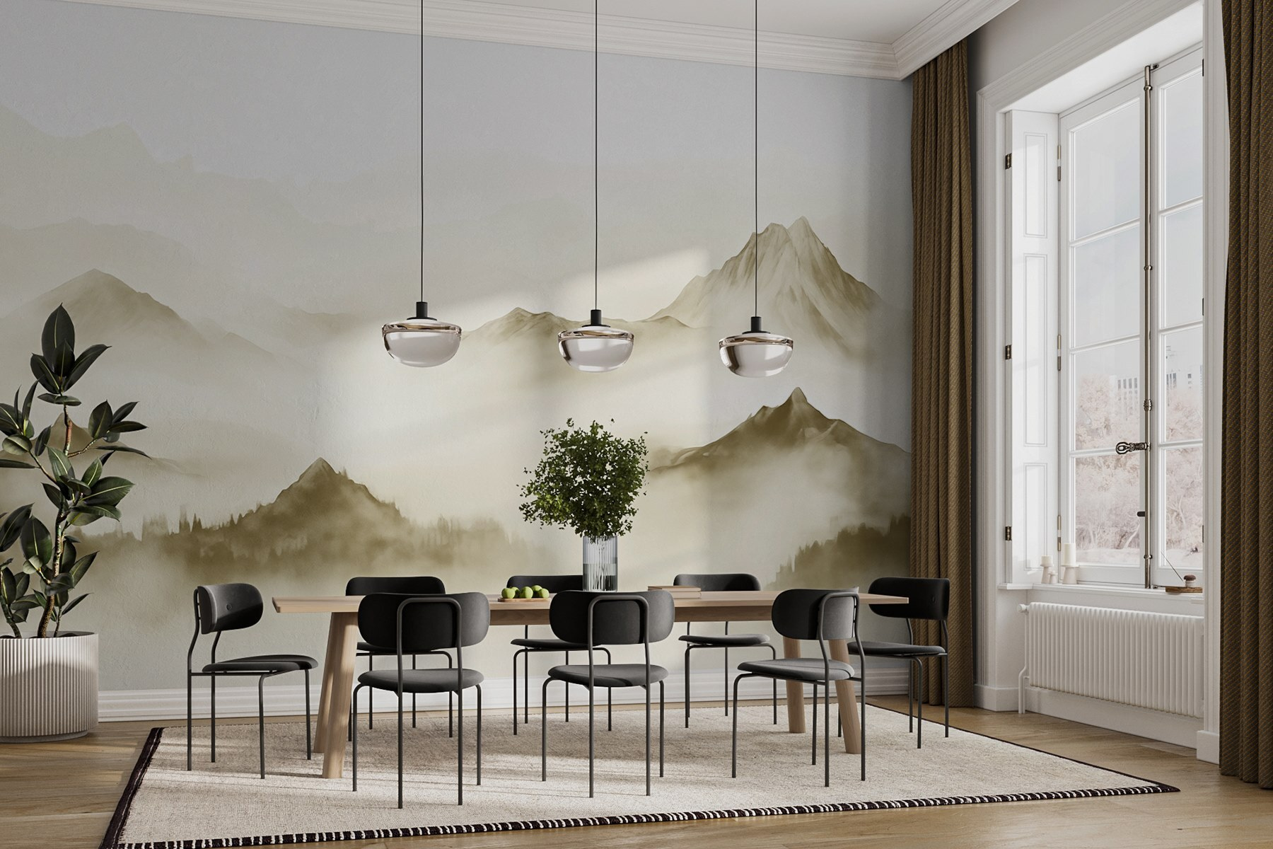 Transforma una pared aburrida en un refugio de ensueño con el mural «Foggy Mountain Range». Imagínate despertarte rodeado de suaves picos cubiertos de niebla, que te invitan a la calma y la aventura. Es como tener la belleza de la naturaleza en tu salón, ¡sin necesidad de botas de montaña! Los tonos cálidos y terrosos añaden un ambiente acogedor, perfecto para tomar un café o acurrucarse con un buen libro. Además, es una forma fácil de sorprender a tus amigos cuando vean tu espacio: «¡Vaya, qué artístico eres!». Créenos, este mural puede dar pie a profundas conversaciones sobre la vida o incluso inspirar una escapada espontánea. ¡Perfecto para cualquiera que anhele un poco de naturaleza sin barro!
