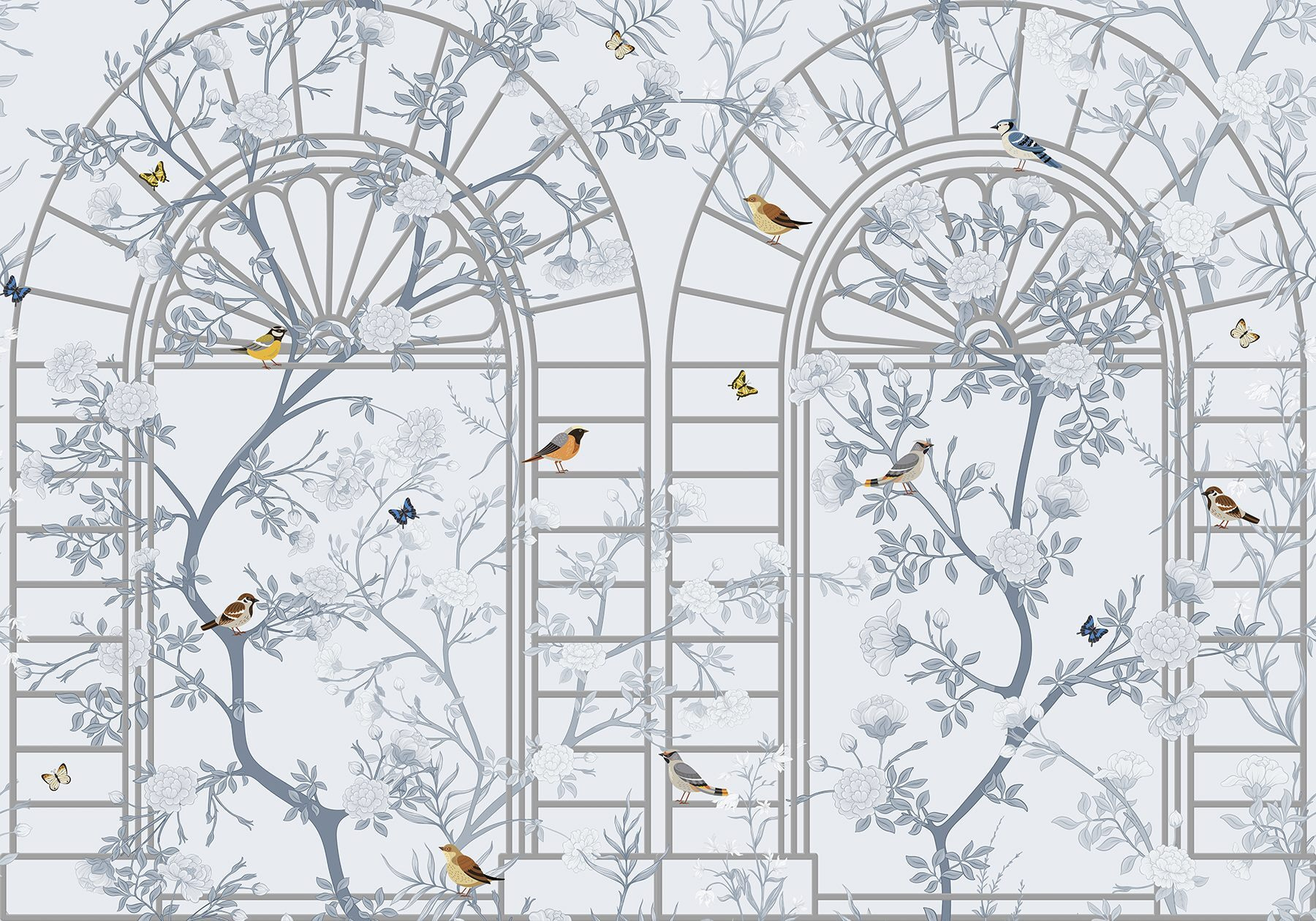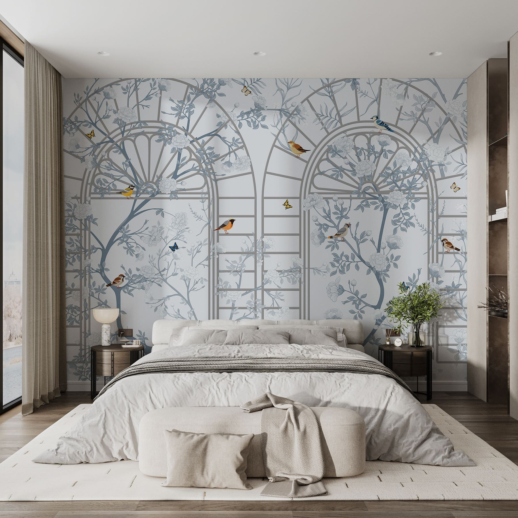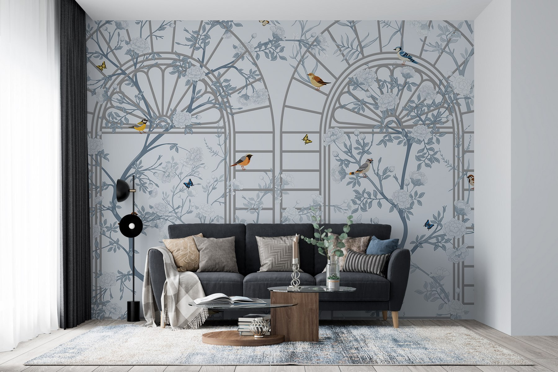 Transforma tu espacio con este impresionante mural que presenta una mezcla de pájaros y flores de ensueño. Imagina la serenidad que aporta, casi como una relajante bocanada de aire fresco que te susurra: «¡Eh, relájate un poco!». La delicada escalera y el intrincado diseño floral crean un ambiente ligero y aireado que te hace sentir como si estuvieras entrando en un tranquilo jardín, incluso si lo único que crece en tu casa es esa vieja planta en el alféizar de la ventana. ¿Y esos pájaros? Parecen dispuestos a charlar, como si estuvieran cantando las melodías más dulces solo para ti. Perfecto para un rincón de lectura acogedor o una entrada atractiva, este mural añade un toque de personalidad que dice: «La vida es un poco caprichosa, ¡y eso está bien!». ¿Quién no querría eso?