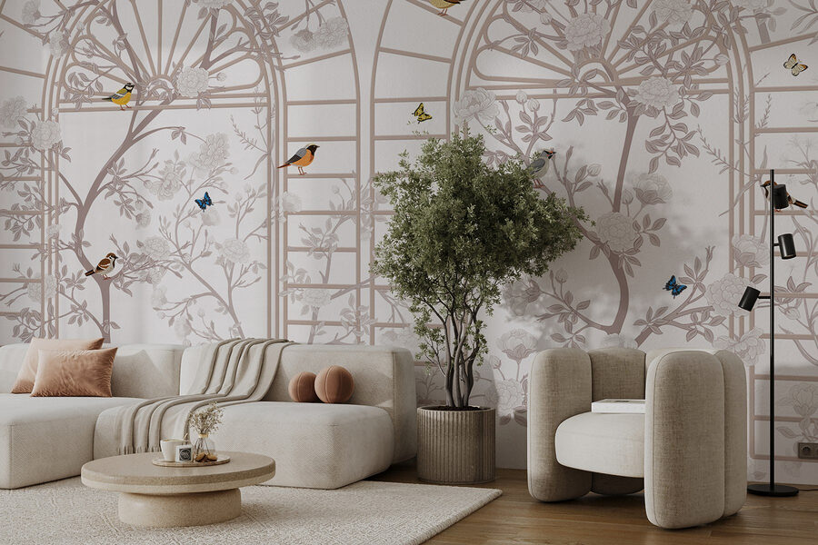 Imagina entrar en una habitación acogedora y ser recibido por este encantador mural de pared, ¡con escalera y todo! El «Papel pintado mural con escalera y pájaros» lleva un soplo de naturaleza al interior de tu hogar. Con delicadas flores y alegres pájaros, pinta una escena serena que puede hacer que cualquiera se sienta como si estuviera echando un vistazo a un tranquilo jardín.