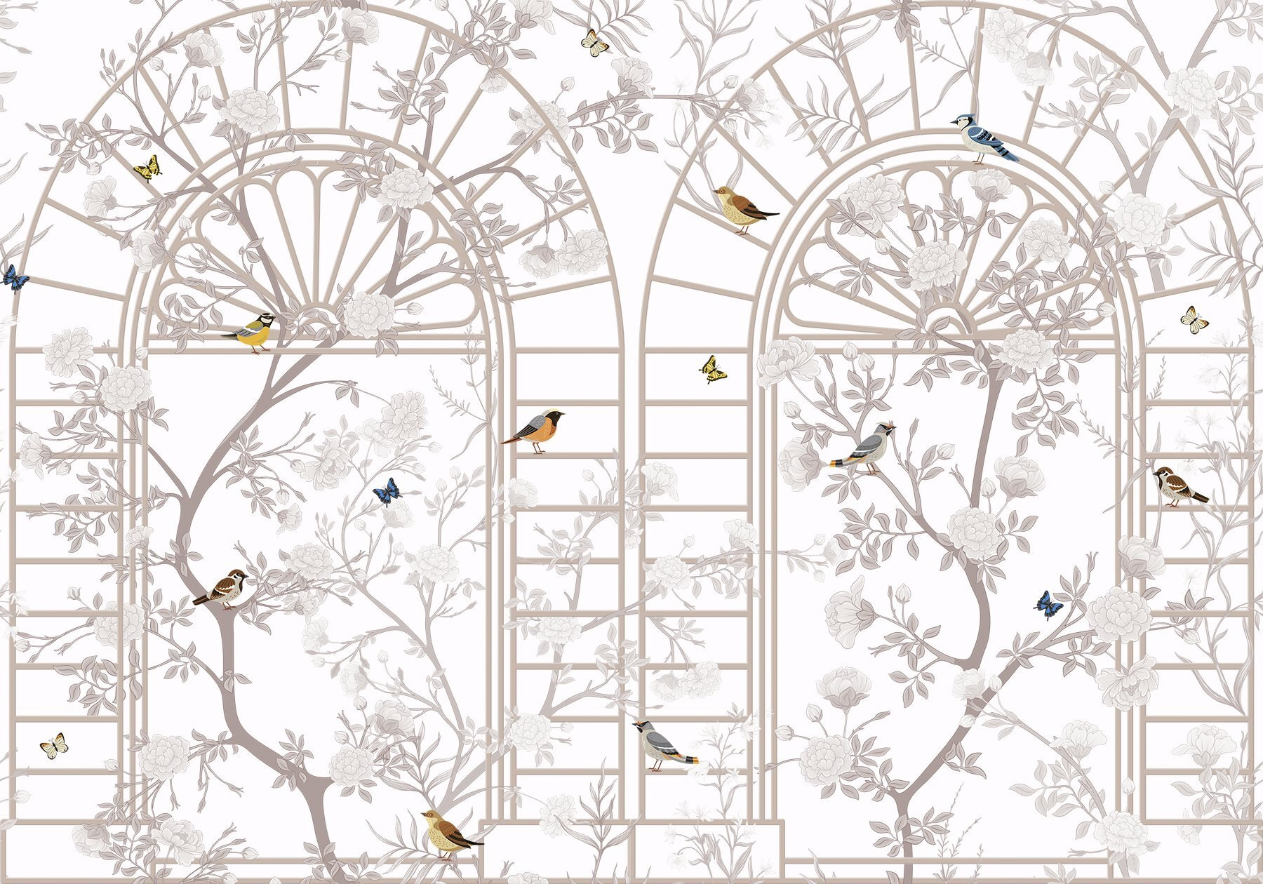 Imagina entrar en una habitación acogedora y ser recibido por este encantador mural de pared, ¡con escalera y todo! El «Papel pintado mural con escalera y pájaros» lleva un soplo de naturaleza al interior de tu hogar. Con delicadas flores y alegres pájaros, pinta una escena serena que puede hacer que cualquiera se sienta como si estuviera echando un vistazo a un tranquilo jardín.