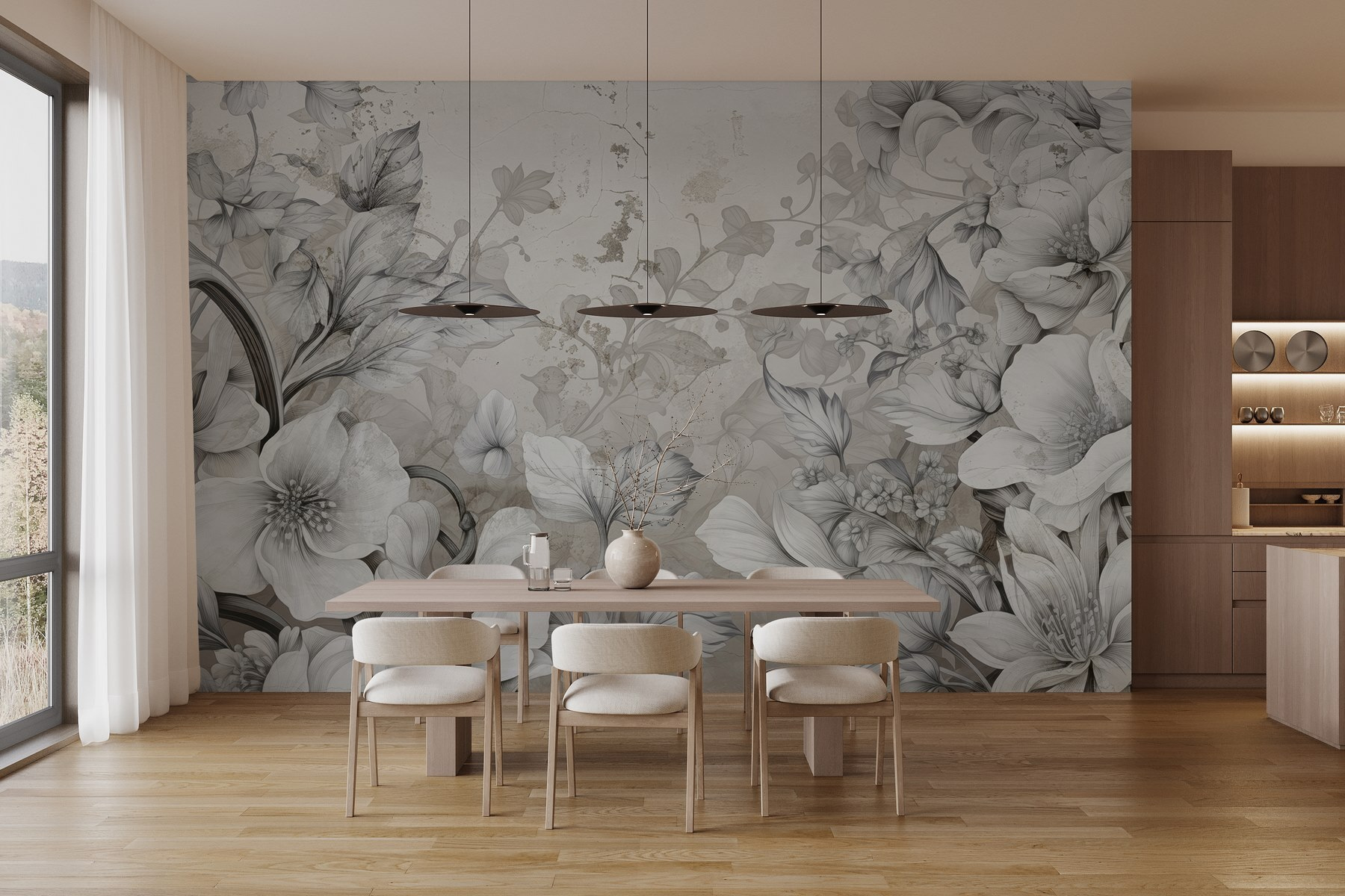 Transforma cualquier estancia con la cautivadora belleza de «Delicate Blooms in Soft Grayscale Hues» (Delicadas flores en suaves tonos grises). Este mural transmite elegancia y envuelve tu espacio en un suave abrazo de flores acuareladas. Imagina despertarte con estos suaves pétalos adornando tus paredes, evocando una atmósfera tranquila e inspirando la creatividad. Cada pincelada cuenta una historia, lo que lo hace perfecto para un rincón de lectura acogedor o una sala de estar elegante. Aquí no hay colores llamativos, solo tonos delicados que dan vida a tu decoración. Es como llevar un jardín sereno al interior, sin el molesto polen. ¡No te sorprendas si tus amigos se pasan por tu casa solo para admirar la magia!