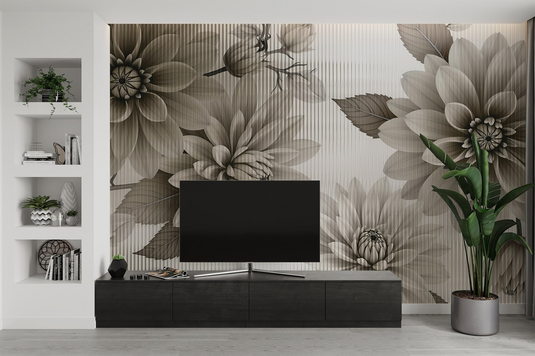 Transforma cualquier espacio en un jardín sereno con este elegante mural floral monocromático. Imagínate entrar en una habitación rodeada de estas hermosas flores, ¿no te hace latir un poco más rápido el corazón? Los tonos suaves y apagados bailan juntos como una suave brisa, creando un ambiente tranquilo y acogedor. Perfecto para un rincón de lectura acogedor o un dormitorio de ensueño, este mural aporta un toque de naturaleza al interior sin las molestias de las plantas reales. Imagina acurrucarte con un libro, envuelto en esta atmósfera tranquila. Es como tener tu propio jardín secreto en casa, ¡pero sin el molesto polen! Lleva a tu hogar un poco de elegancia y deja que las flores hablen por sí mismas.