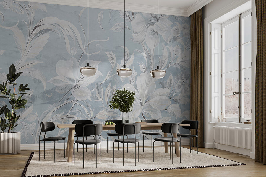 Transforma tu espacio con este impresionante «Mural de pared con diseño floral en blanco y gris». Imagina entrar en una habitación donde suaves motivos florales bailan delicadamente por las paredes, creando un ambiente aireado y sereno. ¡Es como tener un jardín sin alergias! Estas delicadas flores, sobre un fondo azul claro, combinan a la perfección con cualquier entorno, ideales para alegrar un rincón aburrido o añadir encanto a tu acogedor rincón de lectura. Imagina a alguien acurrucado con un libro, rodeado de este tranquilo abrazo floral. Es un recordatorio de que la naturaleza puede aportar calma y alegría al interior de tu hogar. Y, ¿a quién no le gusta un toque de elegancia? El estilo acuarela de este mural aporta un toque único que lo convierte en un tema de conversación. ¡Perfecto para cualquier amante de las flores o para cualquiera que necesite un poco de belleza extra en su vida!