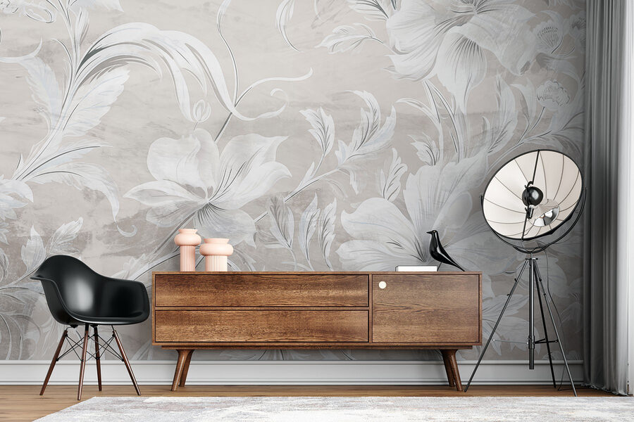 Transforme su espacio con este impresionante mural de pared con un delicado estampado floral en blanco y gris. Es como tener un jardín sereno en el salón, pero sin mantenimiento, ¡sin riego ni molestos caracoles! Los tonos suaves crean un ambiente relajante, perfecto para veladas acogedoras o para tomar un café por la mañana. Imagínate acurrucado con un libro, rodeado de flores que no se marchitan. Este mural añade un toque de elegancia sin dejar de ser desenfadado. Perfecto para cualquiera que busque elevar su decoración con un poco de encanto floral. Puede que incluso te encuentres hablando con él, ¡sin juzgar!