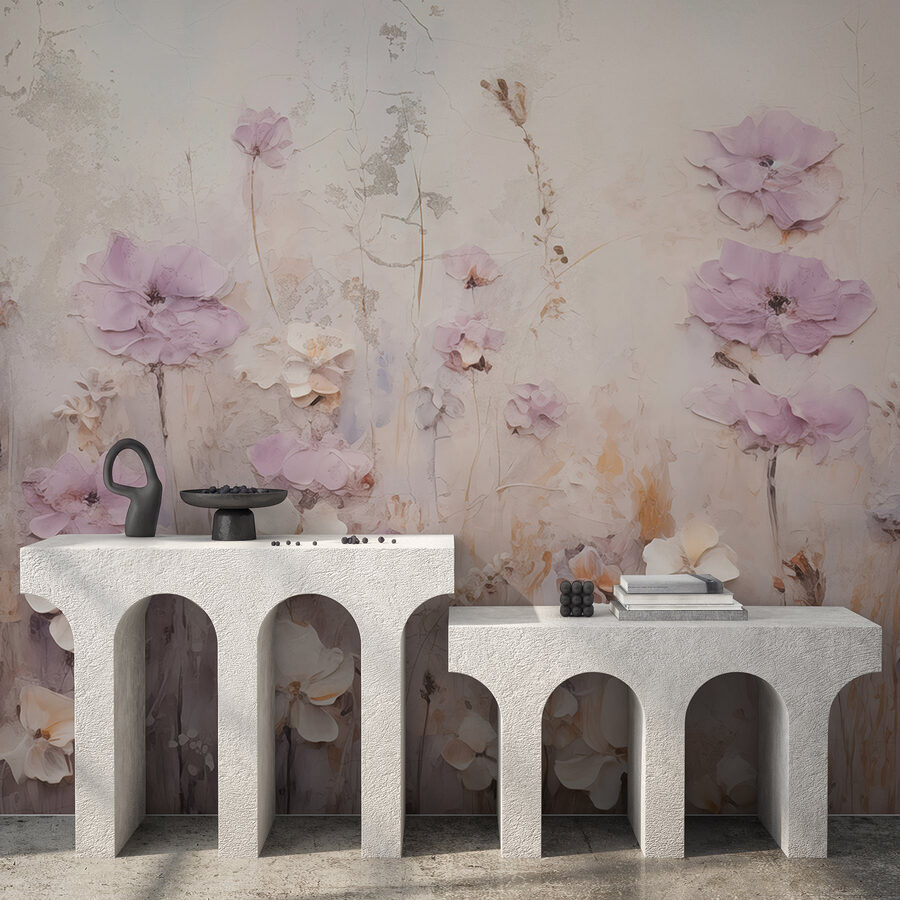 Imagínate esto: un sereno jardín de flores floreciendo en tu pared, transformando sin esfuerzo cualquier espacio en un alegre santuario. Este mural, con sus suaves tonos acuarelados y delicadas flores, invita a una sensación de tranquilidad difícil de resistir. Cada pétalo parece susurrar secretos de la belleza de la naturaleza, mientras que los suaves colores añaden un toque de ensueño, como si hubieras entrado en una mañana de primavera.
