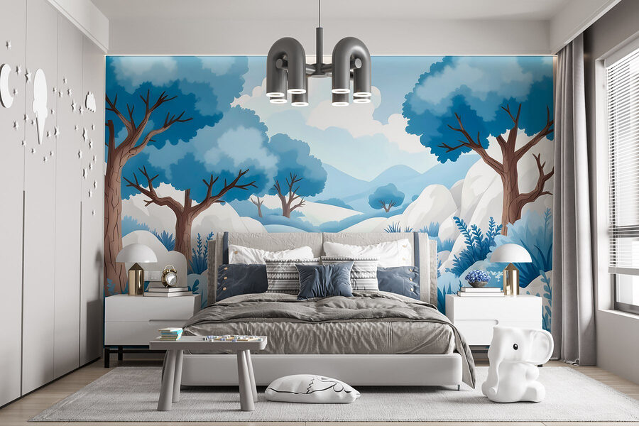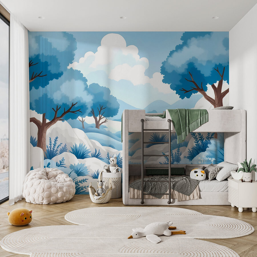 Transforma tus paredes en un refugio de ensueño con este mural «Paisaje nevado». Imagínate despertarte rodeado de azules frescos y blancos tranquilos, como si una suave capa de nieve envolviera tu habitación. Los árboles, con sus peculiares ramas, parecen susurrar secretos de días invernales ya pasados. Es como adentrarse en un cuadro tranquilo, perfecto para rincones acogedores o espacios alegres. Imagina a alguien tomando té mientras disfruta de la serenidad que transmite este mural. No es solo decoración, es como unas minivacaciones cada vez que miras a tu alrededor. ¡Ideal para los amantes de la naturaleza y la fantasía!