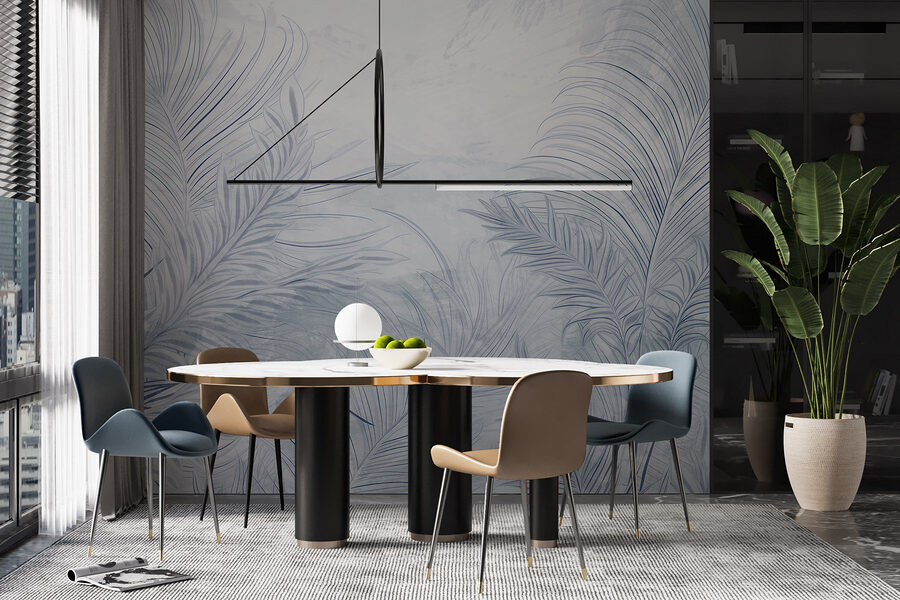 Transforma tu espacio con este mural de ensueño, con un diseño abstracto inspirado en la naturaleza. Imagina entrar en un oasis de tranquilidad cada vez que entras en la habitación. Esas hojas de palmera suaves y fluidas crean un ambiente tranquilo que evoca escapadas tropicales, incluso si solo estás disfrutando de tu café matutino. Los suaves tonos combinan a la perfección, lo que lo hace versátil para cualquier estilo, ya sea un acogedor rincón de lectura o una vibrante sala de estar. Es como llevar un pedazo de naturaleza al interior, sin los insectos ni las quemaduras solares. ¿Quién no querría contemplar a diario una serenidad tan dichosa? Además, seguro que dará pie a conversaciones: «¿Dónde lo has comprado?».